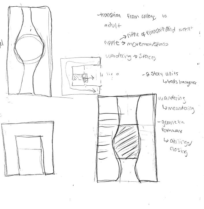 The idea of a geode is very intricate. While the shell holds the form, it’s what’s inside that makes the rock so beautiful. From our concept words, it is our strongest as it helps us communicate our overall idea and building.Through the process, my partner and I came up with many sketches to communicate programming, spacial quality and form.