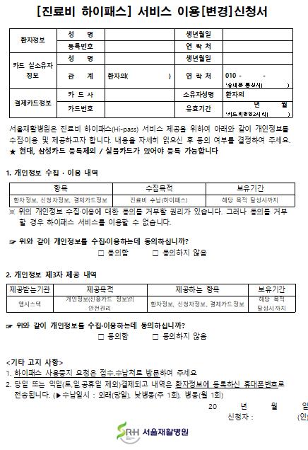 ※ 홖자 자필 동의서 및 위임장은 홈페이지에서 출력 가능합니다.