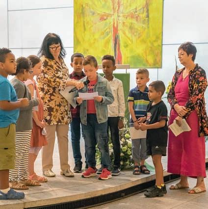 Ein «Neubeginn» auch für zwei Kinder, die im Kreis ihrer Familien und der ganzen Gemeinde in einem bewegenden Ritual während des Gottes dienstes getauft wurden (siehe Angelus-Titelbild). Geprägt wurde die Stimmung auch durch den Chor Cantus Cordis, welcher die Feier musikalisch mitgestaltete. Die ganze Gottesdienstgemeinde wurde schliesslich am Zionsweg mit sonnigem Wetter zu einem reichhaltigen Apéro eingeladen.