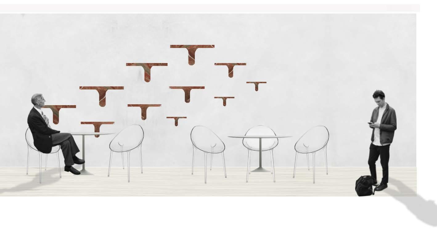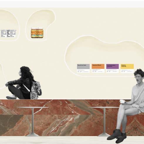 Initial conditions: A dated and retro aesthetic, café site will be adjacent to a lecture hall looking out to an external hallway that connects the art faculty to the campus centre.