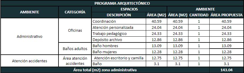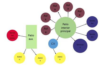 Se plantean tres bloques principales en los cuales se pretende dividir el proyecto dividiéndolo en zona administrativa, de servicios y aulas de clase.