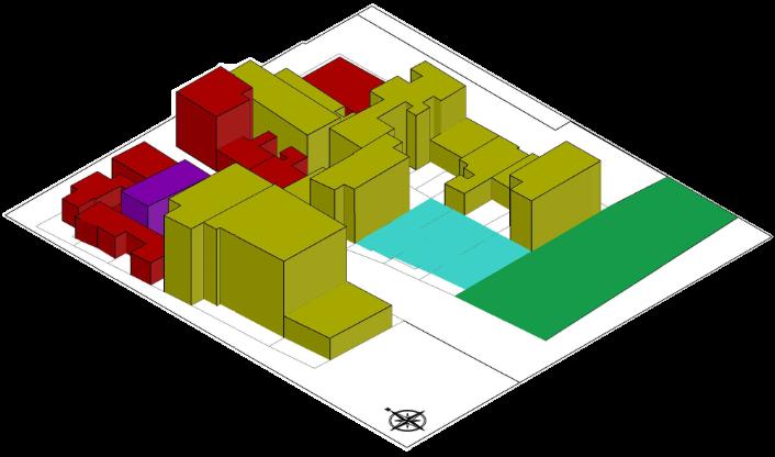 Se consolidan los bloques y se agrega una zona de parquea deros para las rutas escolares o vehículos del personal educati vo.