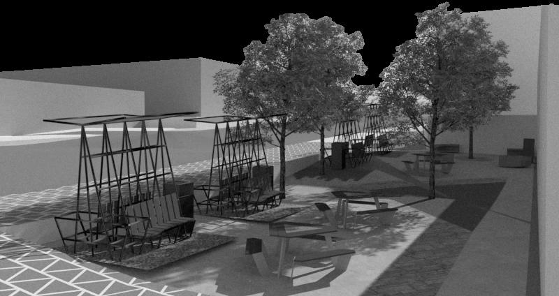 ✓ Implementamos un tipo de mobiliario flexible que proyecte el diseño morfológico del urbanismo táctico permitiendo la organización de comercio informal dentro del espacio público.
