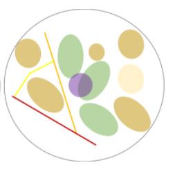 La axialidad la podemos identificar en cómo los elementos organizados en torno al eje que sería el rectán gulo. El ritmo lo identificas en la repeti ción de los tres de mis círculos. La yuxtaposición la identificamos en la intersección de todas las figu ras geométricas.