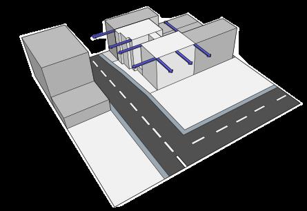 La implantación de nuestro proyecto está diseñada para que el costado norte se encuentre protegido de los vientos mientras el costado del sur estará abierto para un mejor asoleamiento.