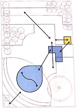 ✓ Mediante el aprovechamiento topográfico y vial creamos un ritmo triangular aplicado en las zonas de circulación peatonal según las cotas de nivel el color en los adoquines del suelo se va alternando.