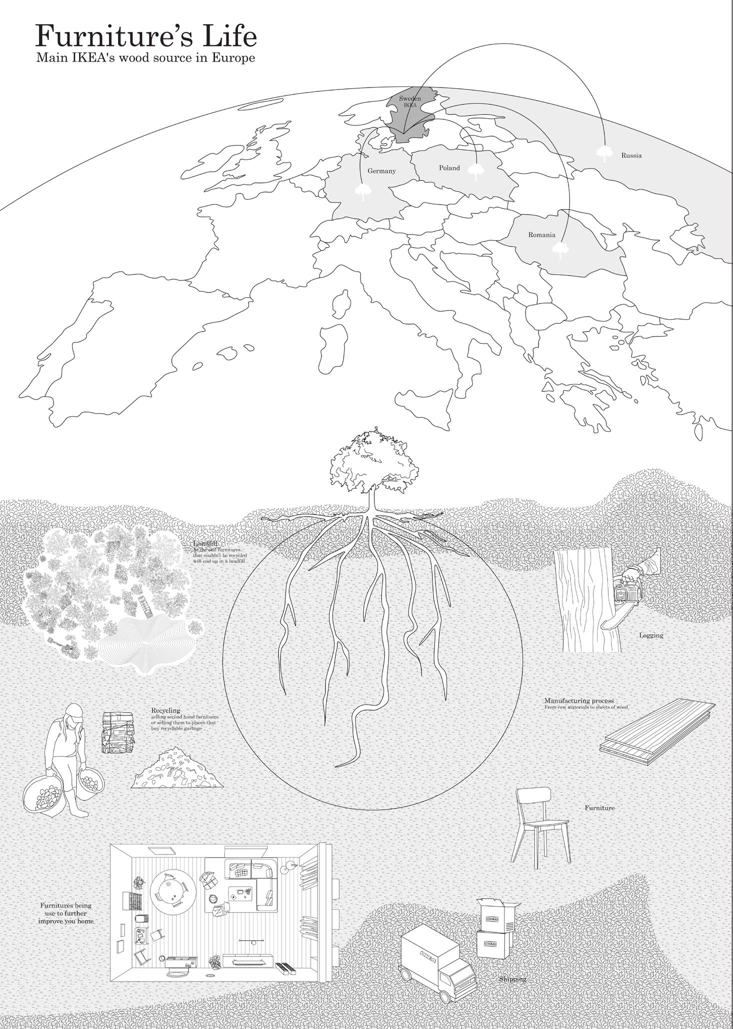 I began by examining the furniture in my room before returning to the beginnings of their lives. I notice that wood or timber is part of almost every furniture I own, so I specifically focused on the wood industry. The goal of my project is to protect illegal logging of old growth wood rather than to stop logging because large corporations will continue to engage in illegal logging and other corrupt activities, which will encourage the government and politicians to accept additional funding and keep quiet as a result of capitalism.
