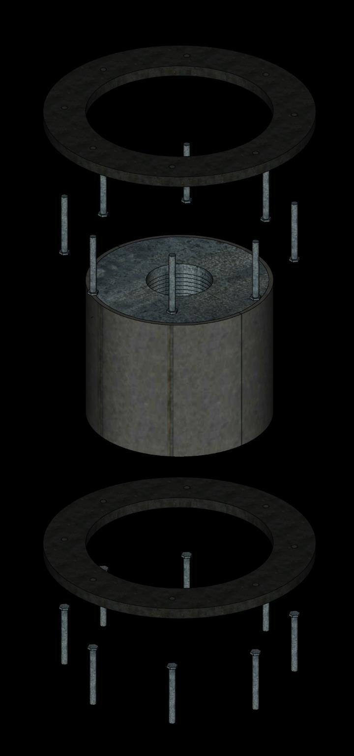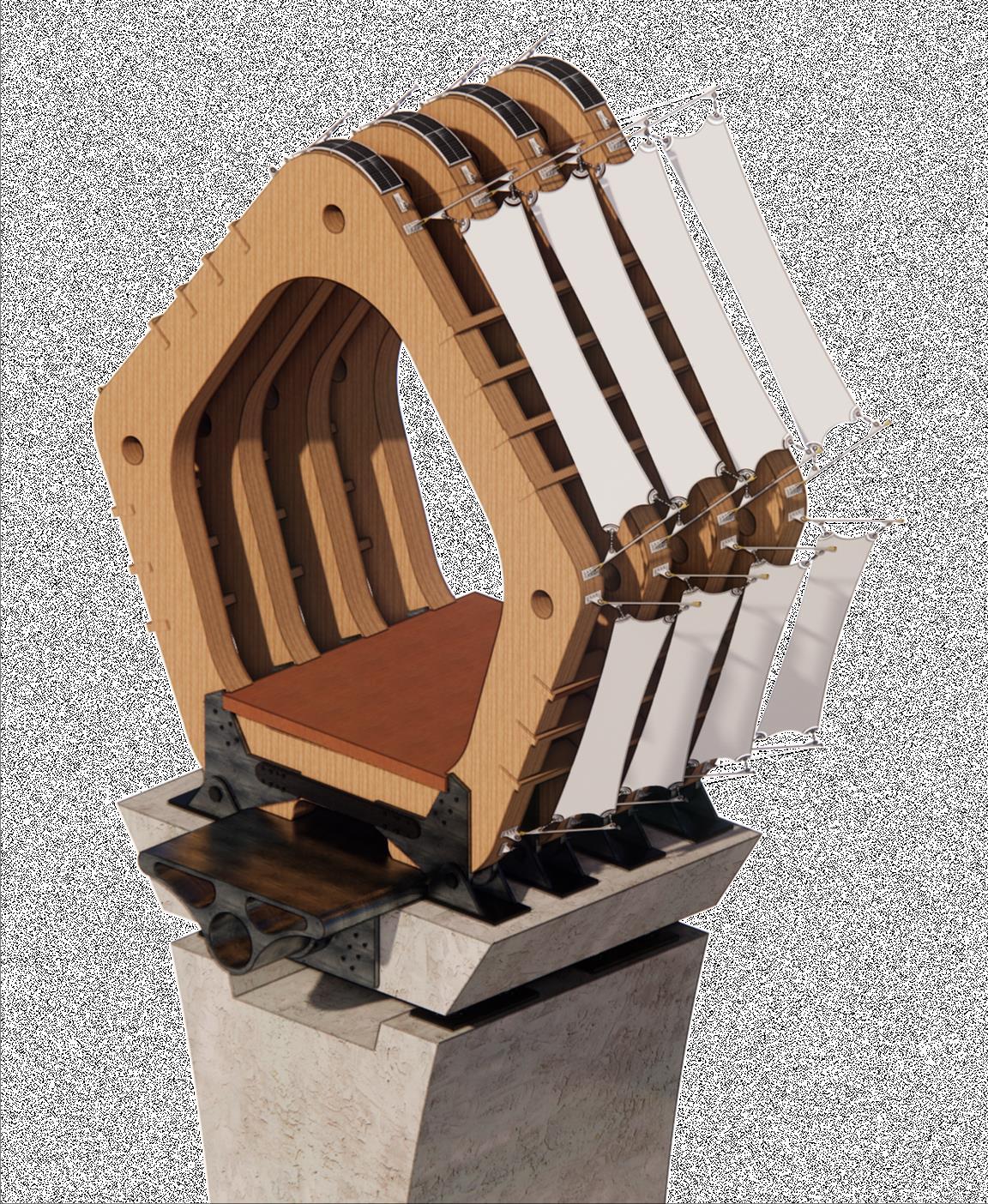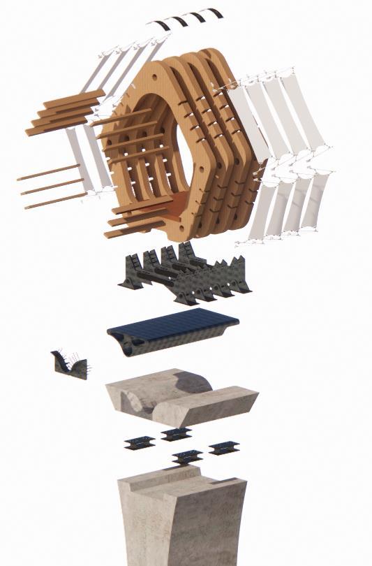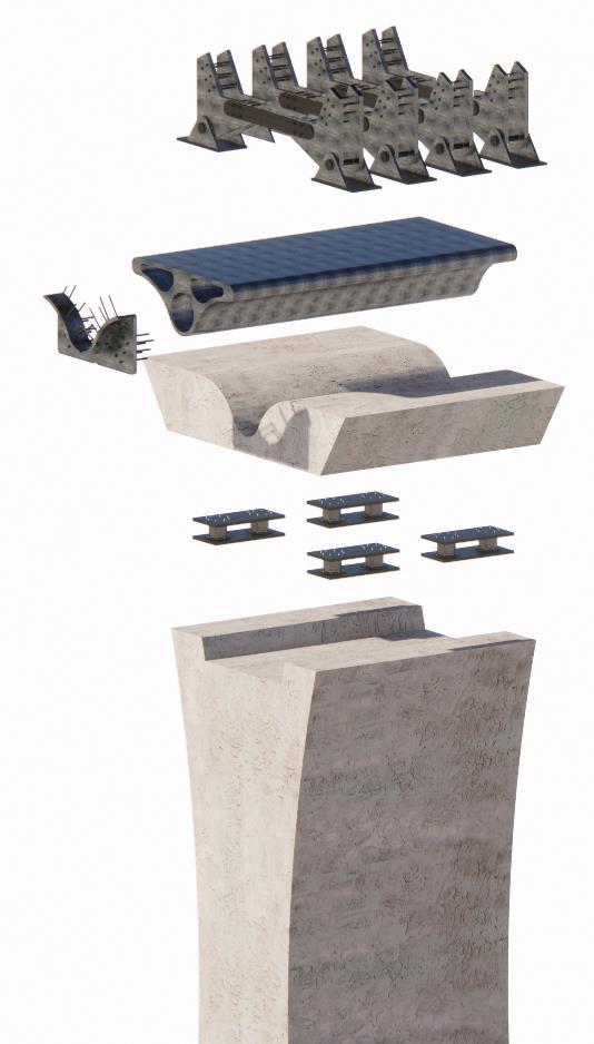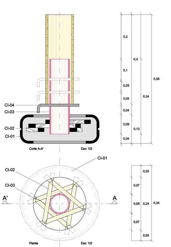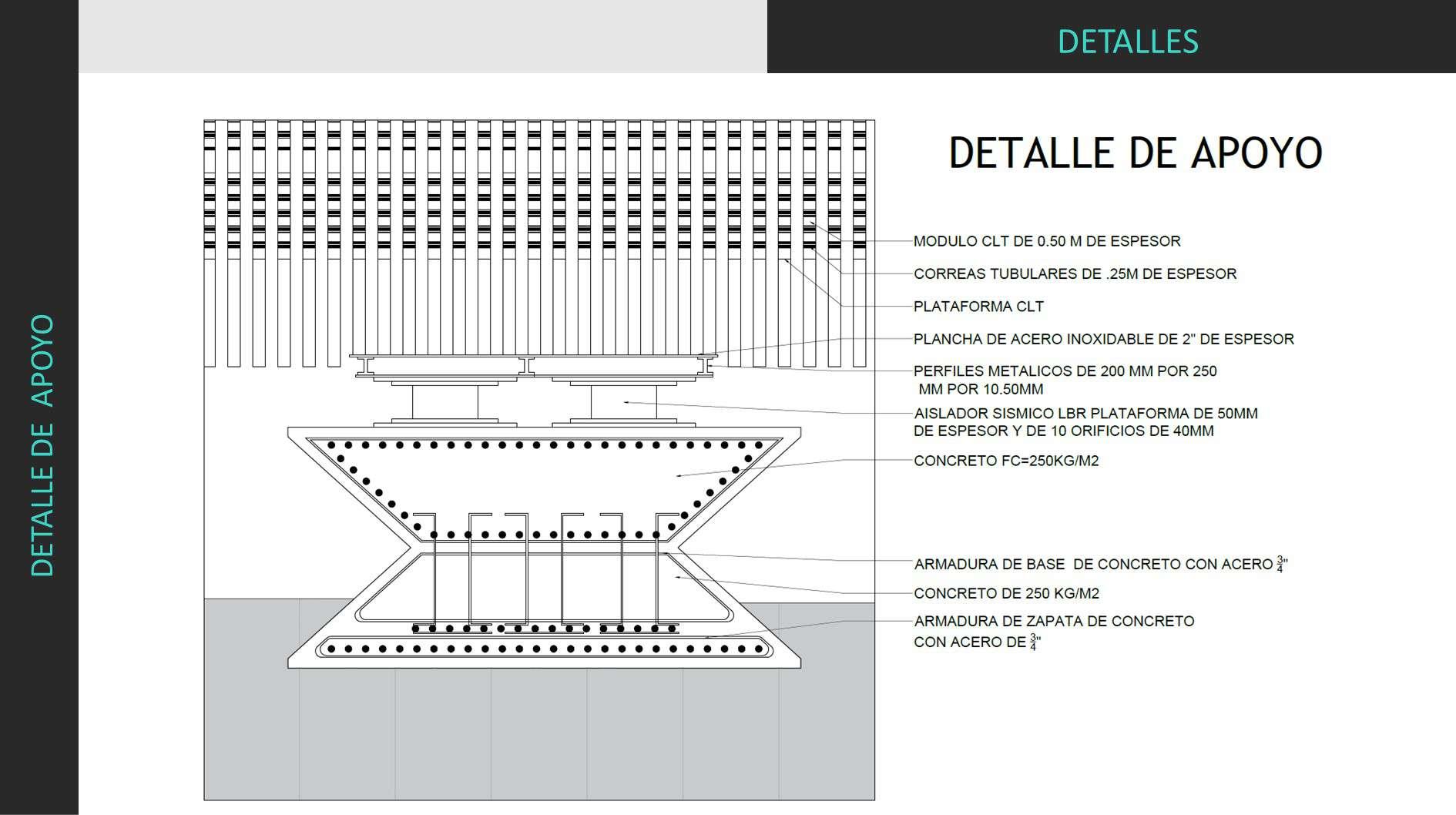 1/10 ESPACIO DE COLOCACIÓN DEL MODULO DE CLT PERNOS DE ARTICULACIÓN BARRA DE REFUERZO TORNILLO ARTICULADOR CON EL SISTEMA MECANICO PIEZA DE CONEXIÓN A LA CIMENTACION TORNILLO PRINCIPAL DE SEGURIDAD ENTRE PLACAS METALICAS PLACA DE TRANSMISION DE CARGAS SISMICAS TORNILLO DE SEGURIDAD TORNILLO DE ANCLAJE A MADERA LAMINADA