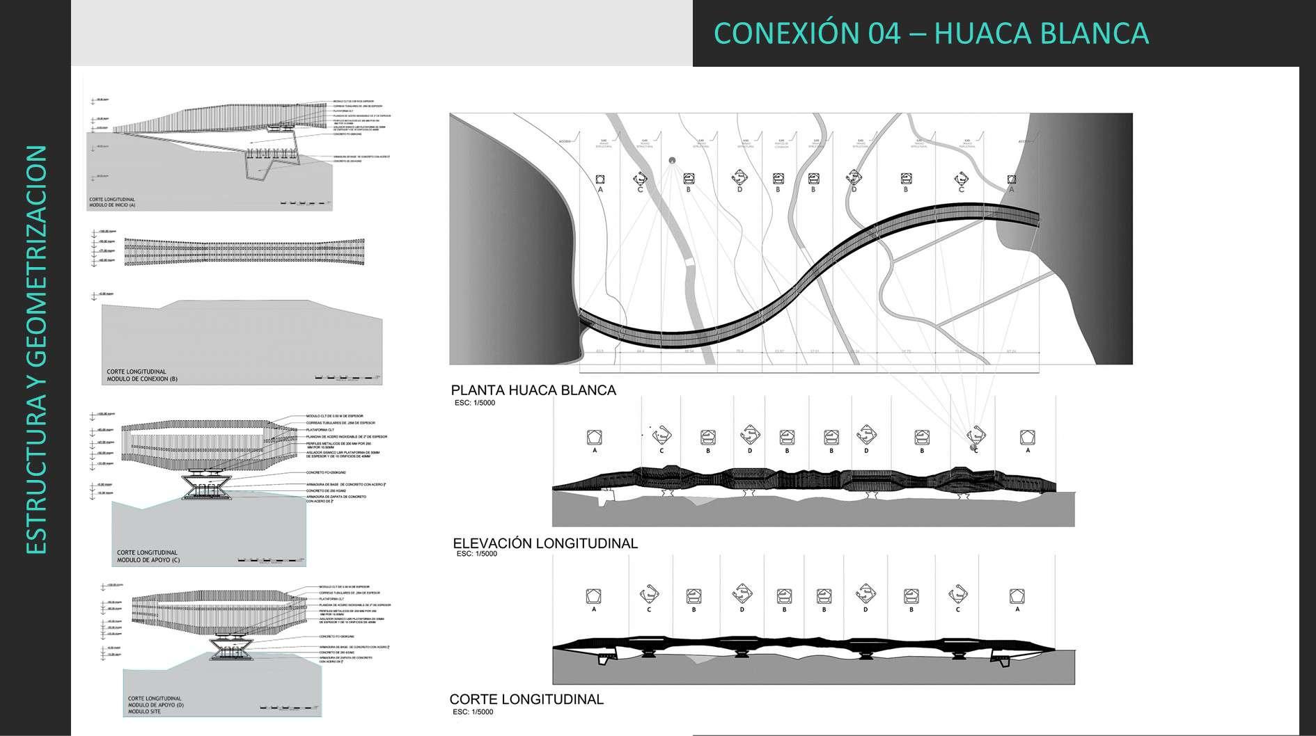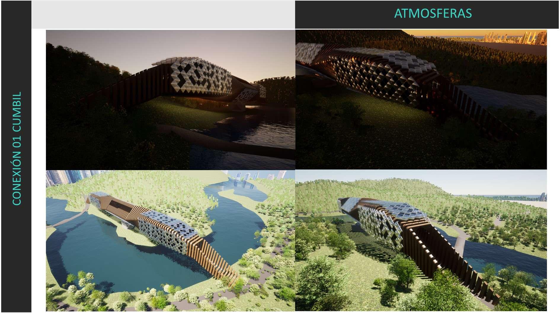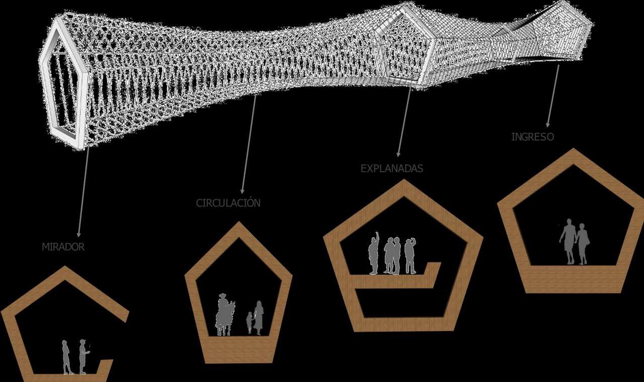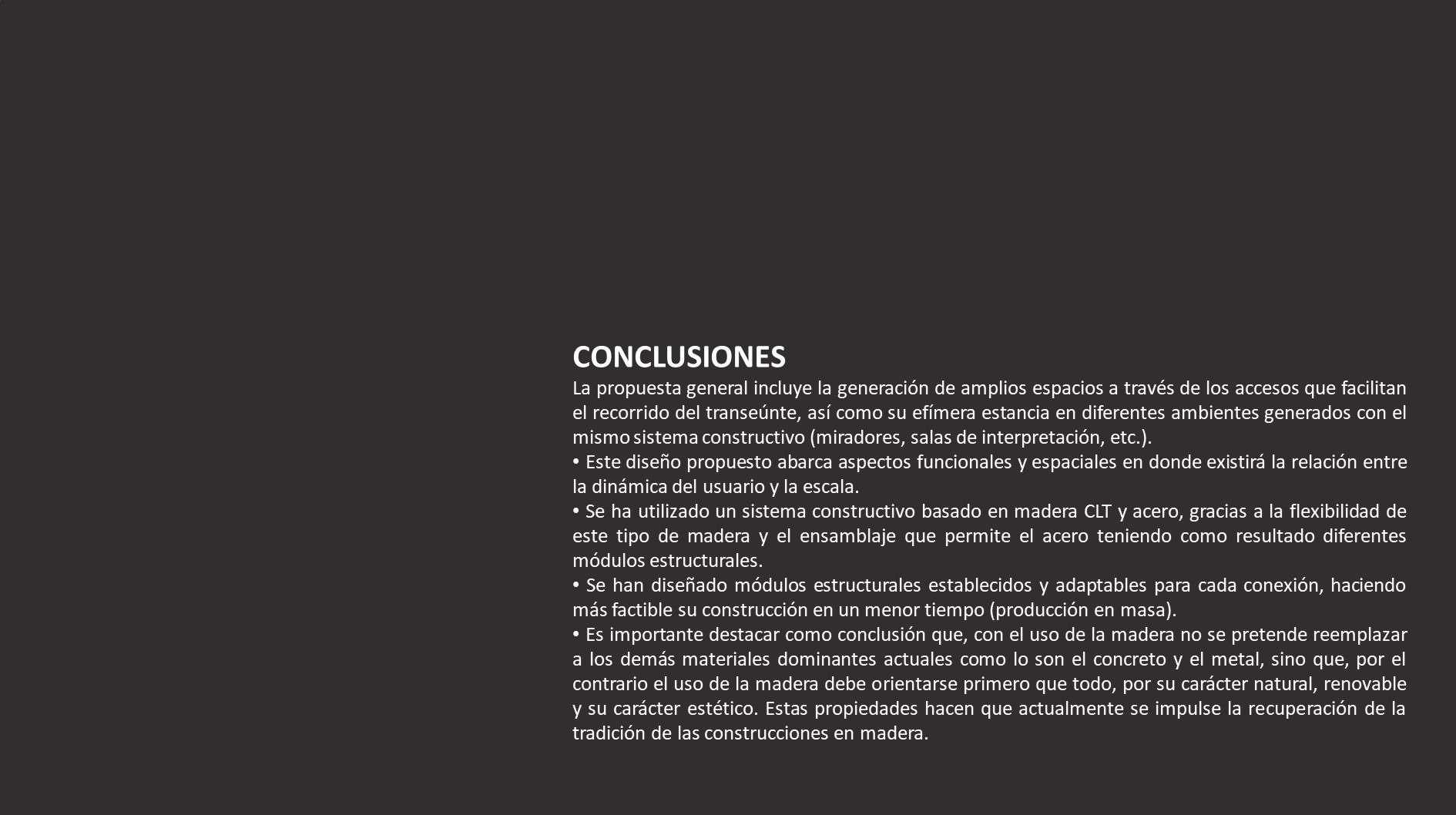 • La finalidad primordial de las propuestas es permitir a estas conectar de una forma rápida y segura al peatón así como de brindar una recorrido agradable y que aproveche las visuales que el entornos nos ofrece, estas conexiones se han desarrollado en base a una arquitectura compleja , como es la fractalidad y las curvas de Bézier , las cuales nos permiten generar una geometría estructuralmente apta para diversos recorridos.