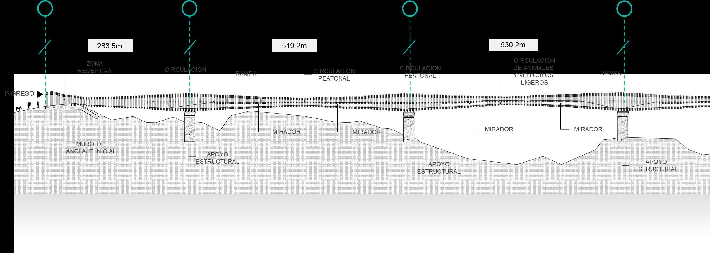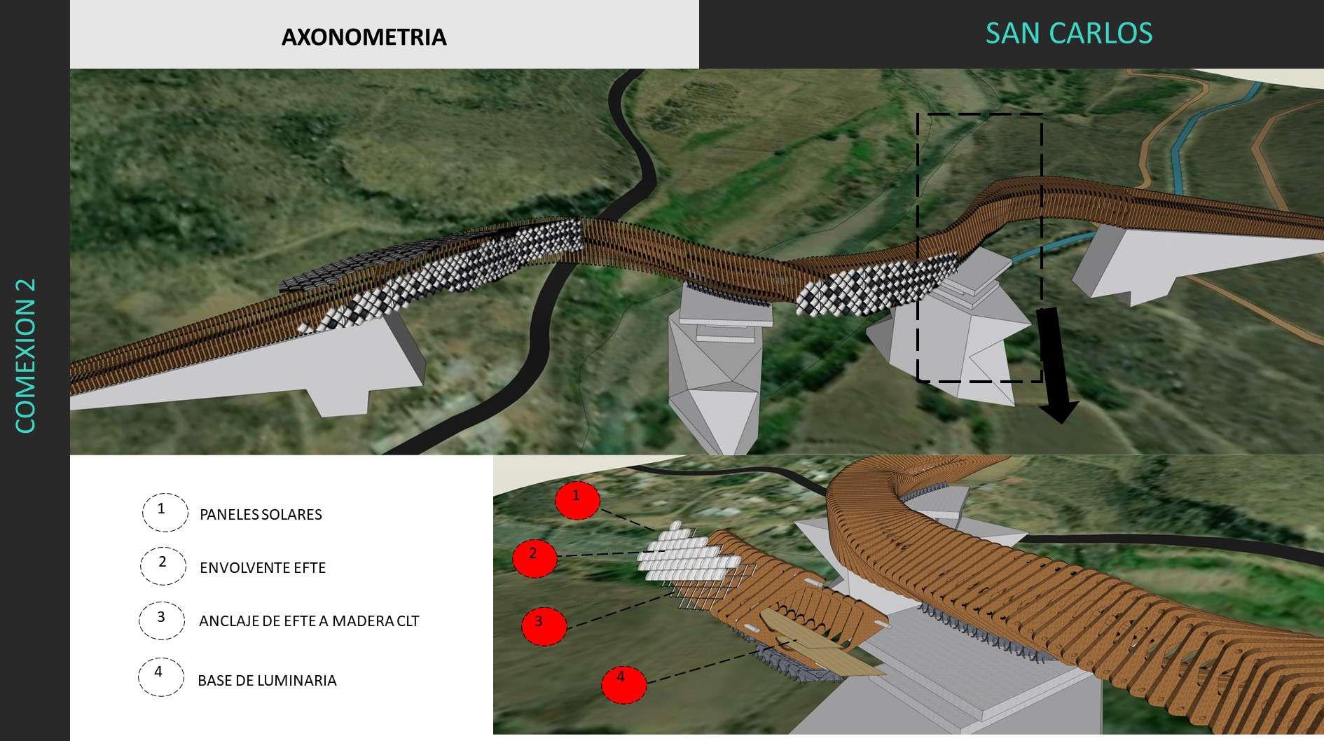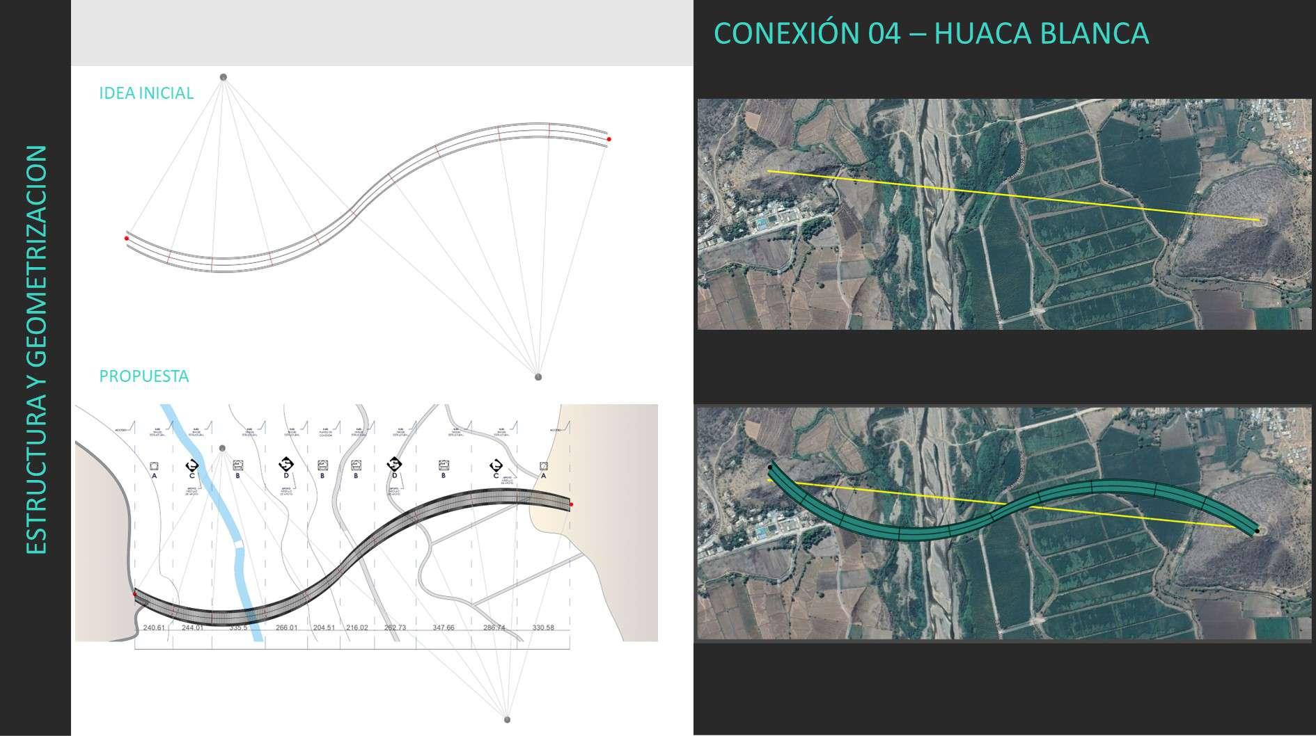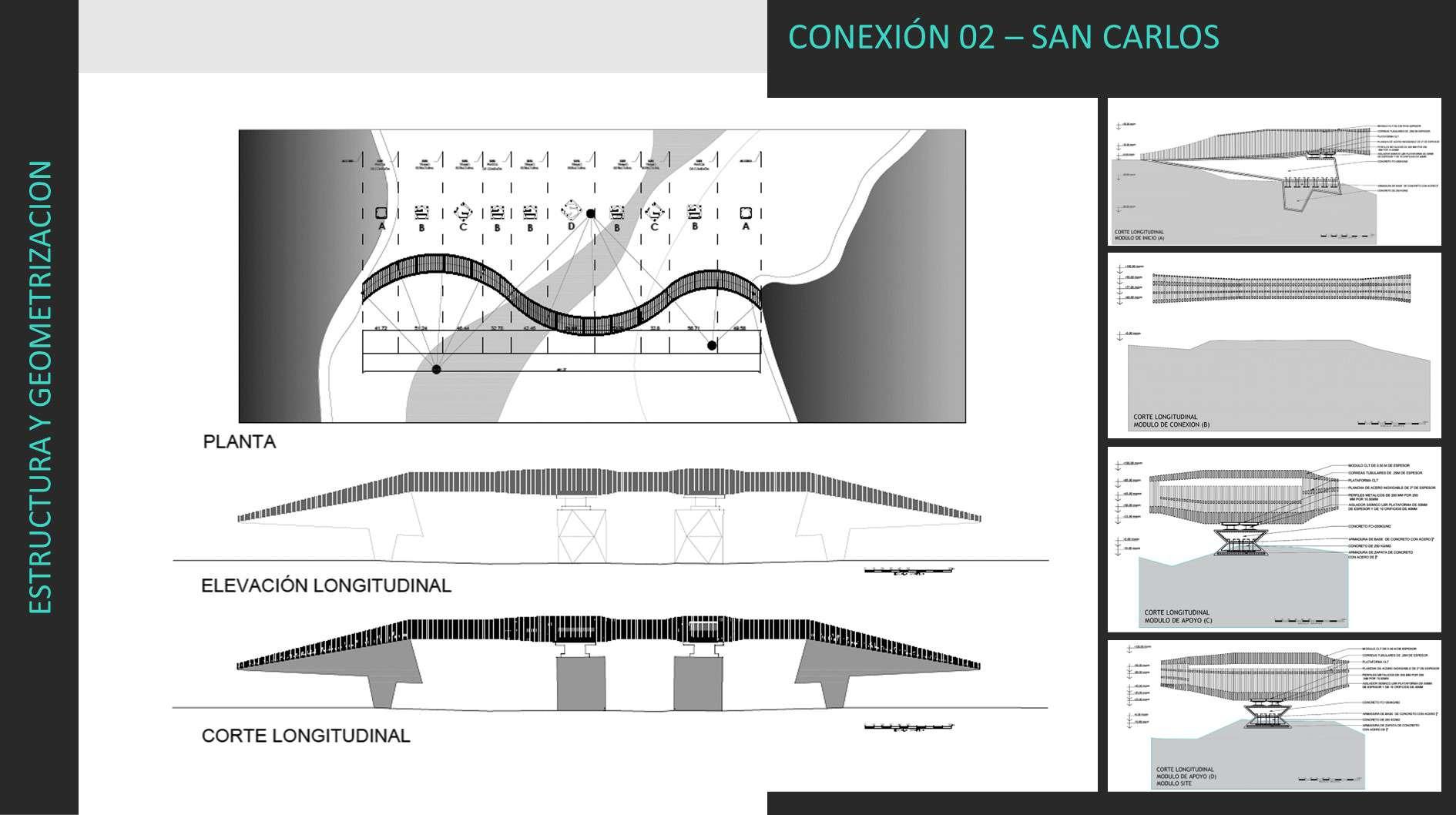• La finalidad primordial de las propuestas es permitir a estas conectar de una forma rápida y segura al peatón así como de brindar una recorrido agradable y que aproveche las visuales que el entornos nos ofrece, estas conexiones se han desarrollado en base a una arquitectura compleja , como es la fractalidad y las curvas de Bézier , las cuales nos permiten generar una geometría estructuralmente apta para diversos recorridos.