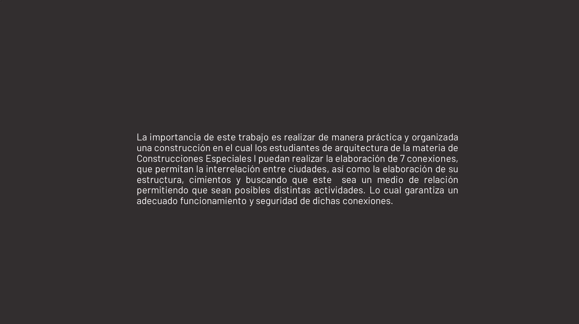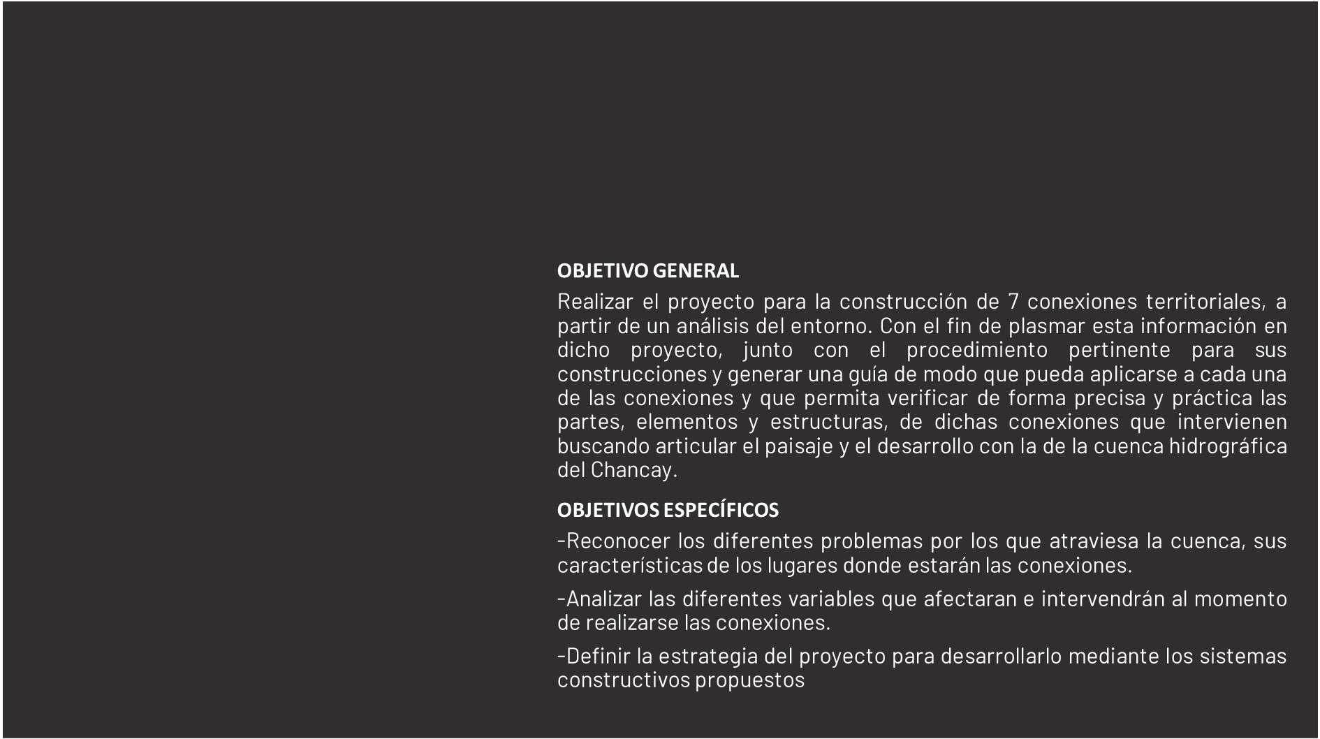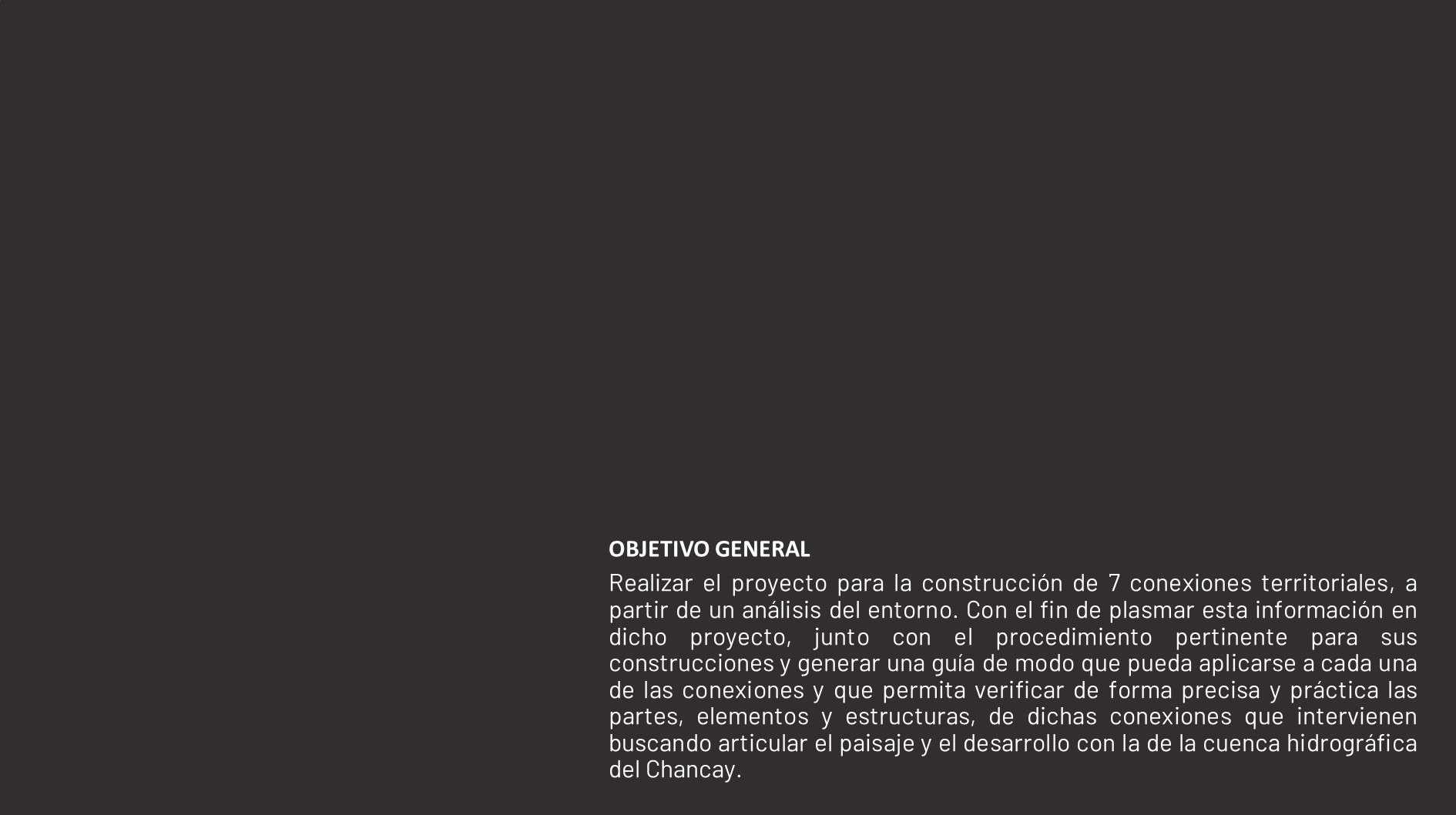 • Proponer diferentes conexiones territoriales, teniendo en cuenta la autenticidad del lugar, la materialidad y el sistema constructivoo, logrando una mejor integraciación entre el echo arquitectónico en la relación con sus habitantes.