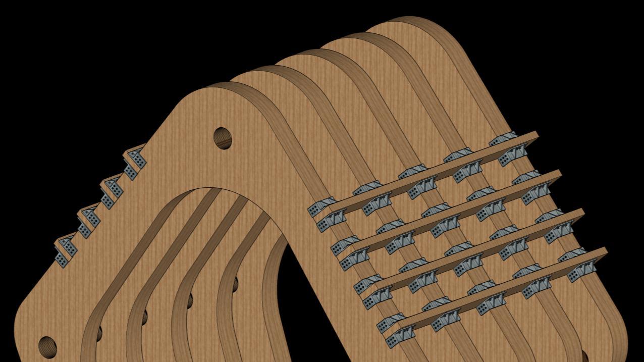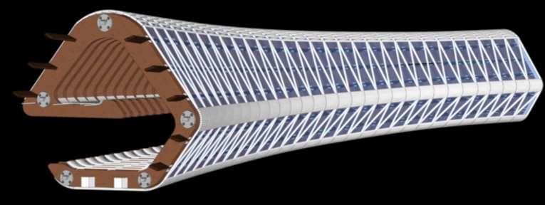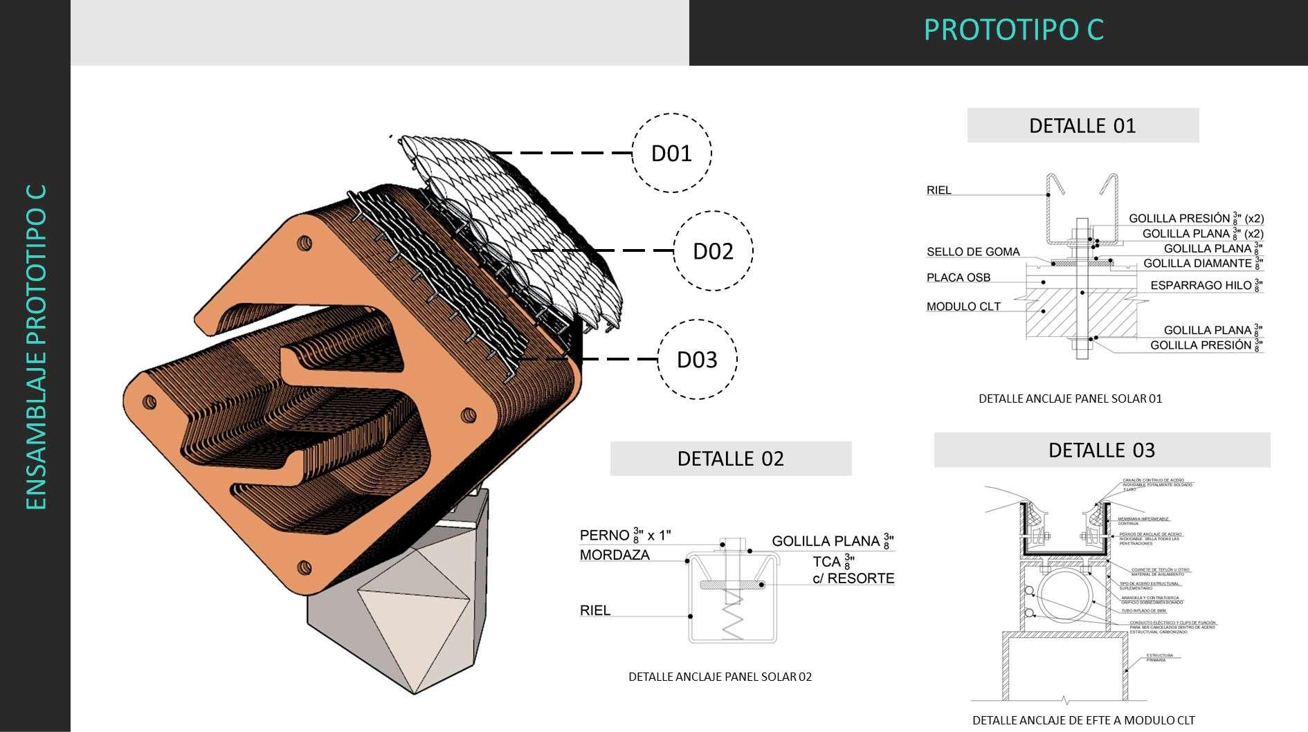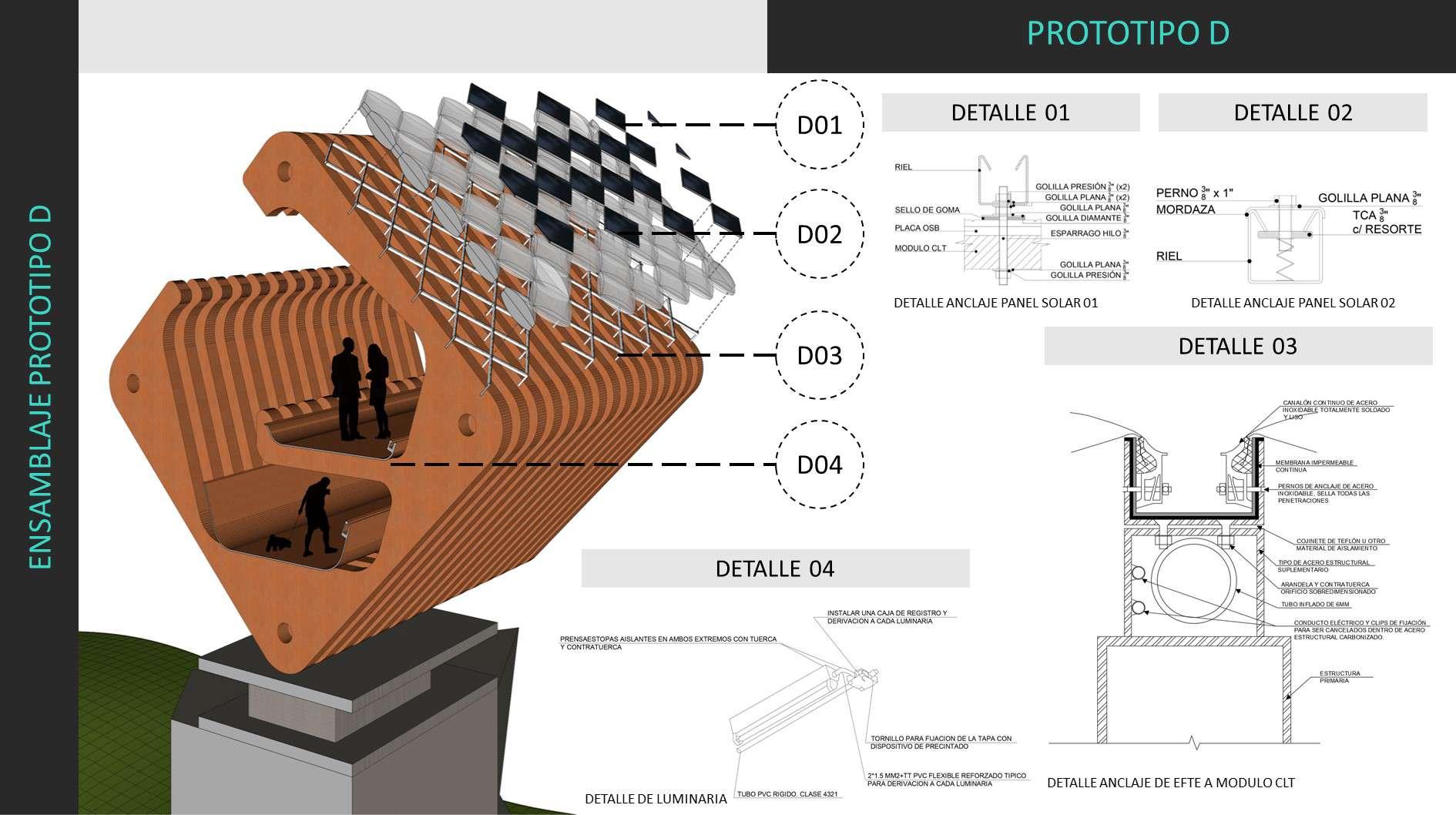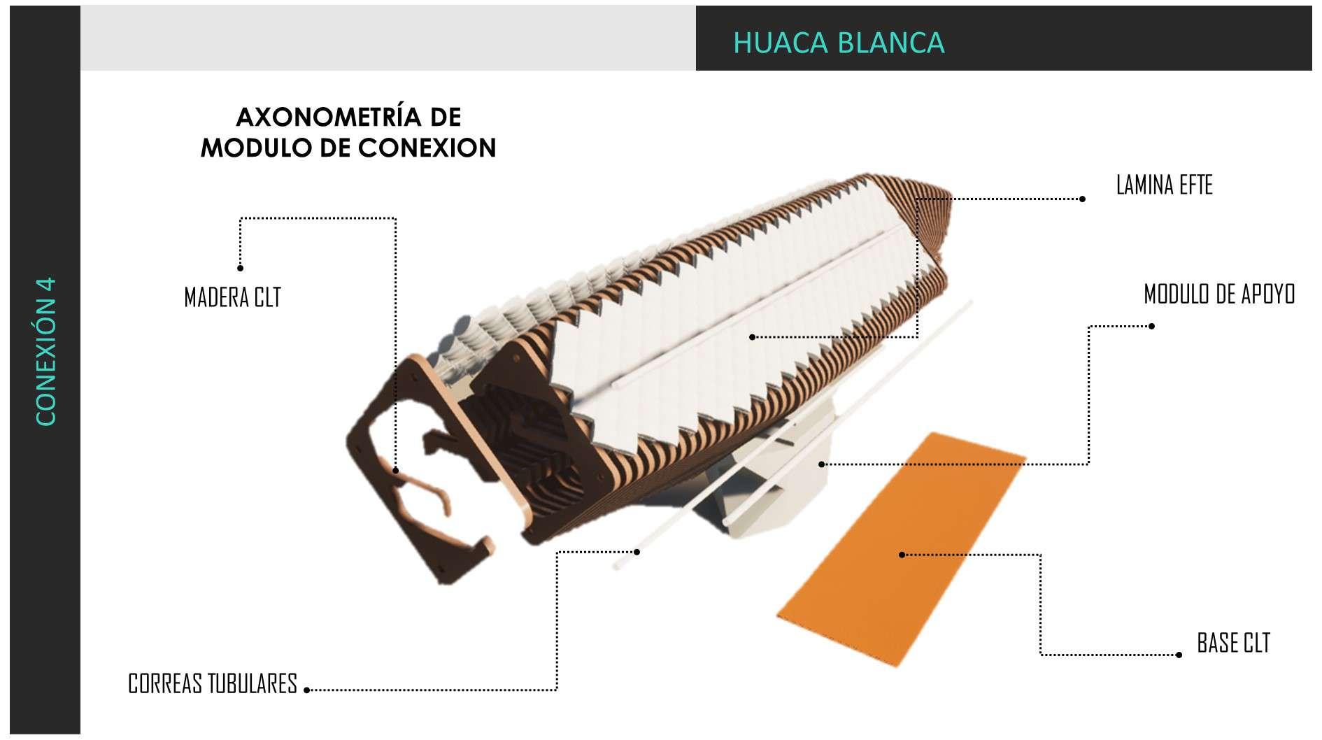 • Se ha utilizado un sistema constructivo basado en CLT y acero, gracias a la flexibilidad de este tipo de madera y el ensamblaje que permite el acero teniendo como resultado diferentes módulos estructurales. , los cuales son establecidos y adaptables para cada conexión, haciendo más factible su construcción y en un menor tiempo.