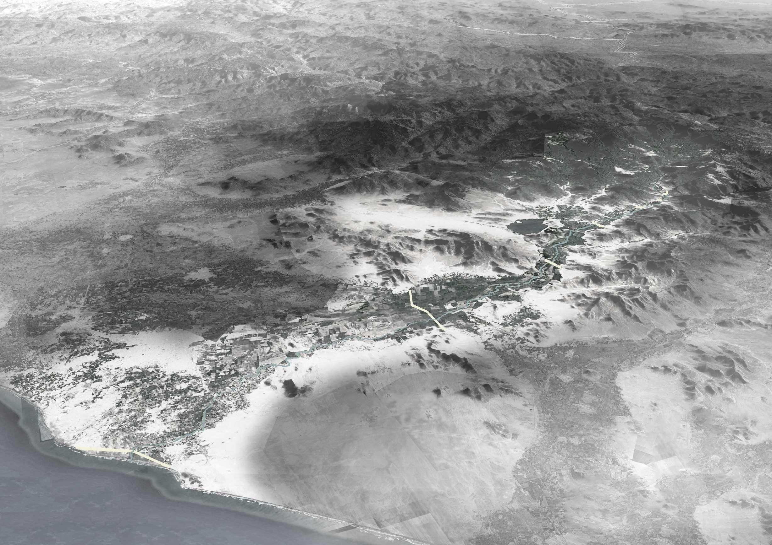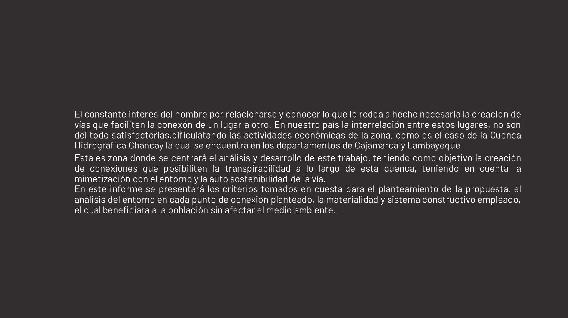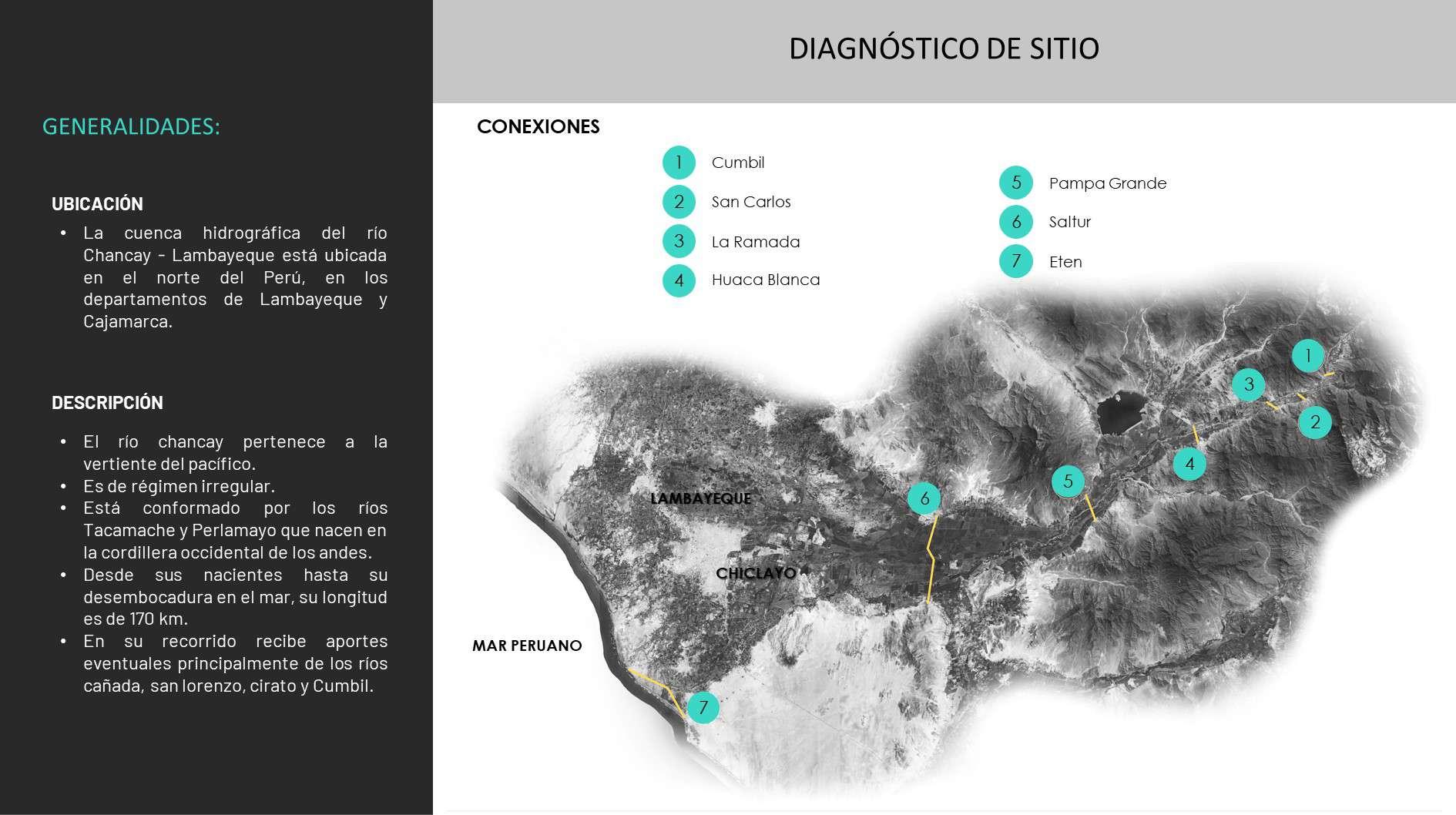 LSe busca lograr conexiones que sean una simbiosis entre el objeto arquitectónico y el lugar a lo largo de la cuenca hidrográfica Chancay-Lambayeque.
