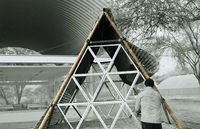 El encargo consistió en realizar un pabellón para celebrar los 120 años de la fundación de la Escuela de Arquitectura de la Pontificia Universidad Católica de Chile.