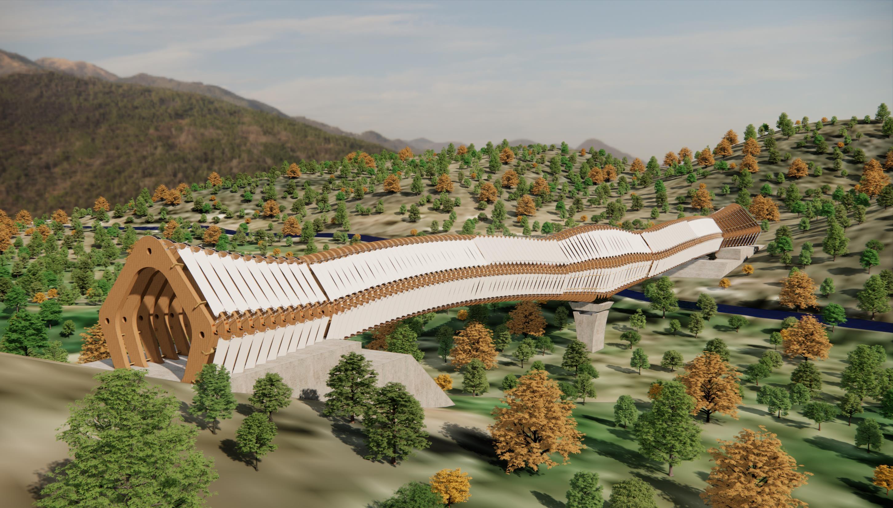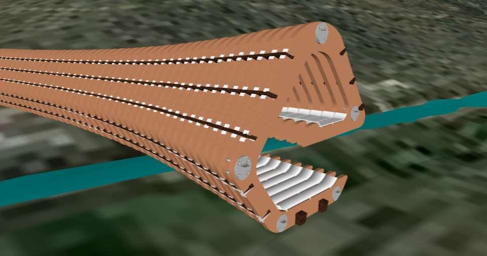 La propuesta de las distintas conexiones utiliza la madera estructural , con lo cual establecerá un nuevo punto de referencia para el uso de materiales sostenibles en grandes proyectos de infraestructura. Los aspectos de sostenibilidad, incluidas son las emisiones limitadas de gases de efecto invernadero ,así como también gracias al empleo de paneles solares permitirán dotar de una energía renovable a la conexión.