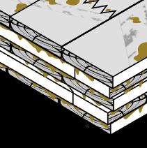 Se pegan las capas unas a otros utilizando adhesivas y se aplica presión.