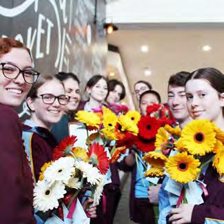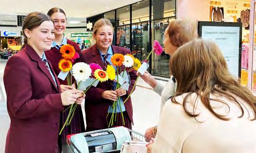 In collaboration with local organisation, Soul Gestures, spearheaded by Catherine Kolomyjec, and the Westfield Whitford City Shopping Centre, an energetic group of Year 12 students, made their idea a reality. This included liaising with the shopping centre, sourcing brightly coloured gerberas, designing cards, scheduling distribution rosters and distributing the flowers during lunchtime.