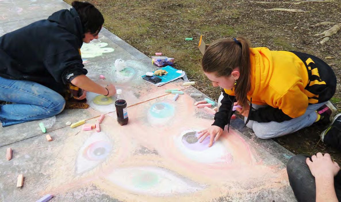 Students participated in activities throughout the day that grew their capacity to notice signs and behaviours which might indicate someone may not be doing okay. There was football kicking on the oval, basketball competitions in the Multi-Purpose Hall, a photo booth with dress-ups and R U OK? Day props, plus fantastic footpath chalk artworks that brought together students from our Junior and Senior Schools in a beautiful display of what R U OK? Day meant to them.