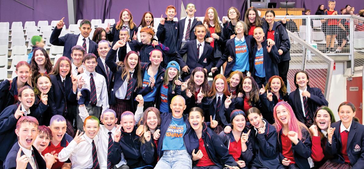 Staff and students shed and coloured their locks in the World’s Greatest Shave in memory of Trinity Year 8 student Hunter McBurnie, who passed away in January this year after a long battle with blood cancer.