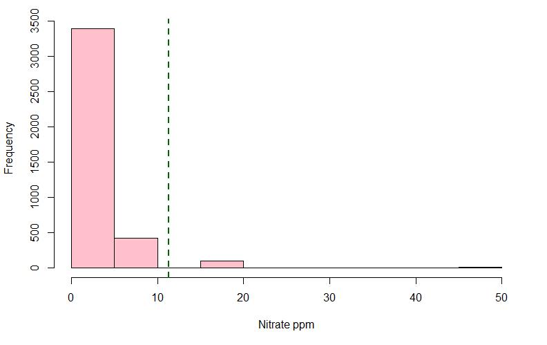 * N.B. Nitrates Directive set an upper limit of 11.3ppm NO3-N for all rivers across the UK. Historical nitrate levels indicate that natural river conditions are often much lower (EA, 2021).