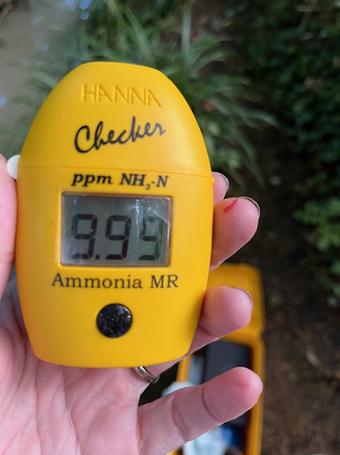 * The Ammonia Colorimeter upper limit is 9.99 ppm, the lower test limit is 0.00 ppm with an accuracy of ± 0.05 ppm ± 5%. So, a 0.00 ppm reading does not mean there is no ammonia present, it will be between 0.00 and 0.05 ppm ± 5%. A 9.99 ppm reading does not mean that is the total ammonia, it means that it is in excess of 9.99 ppm.