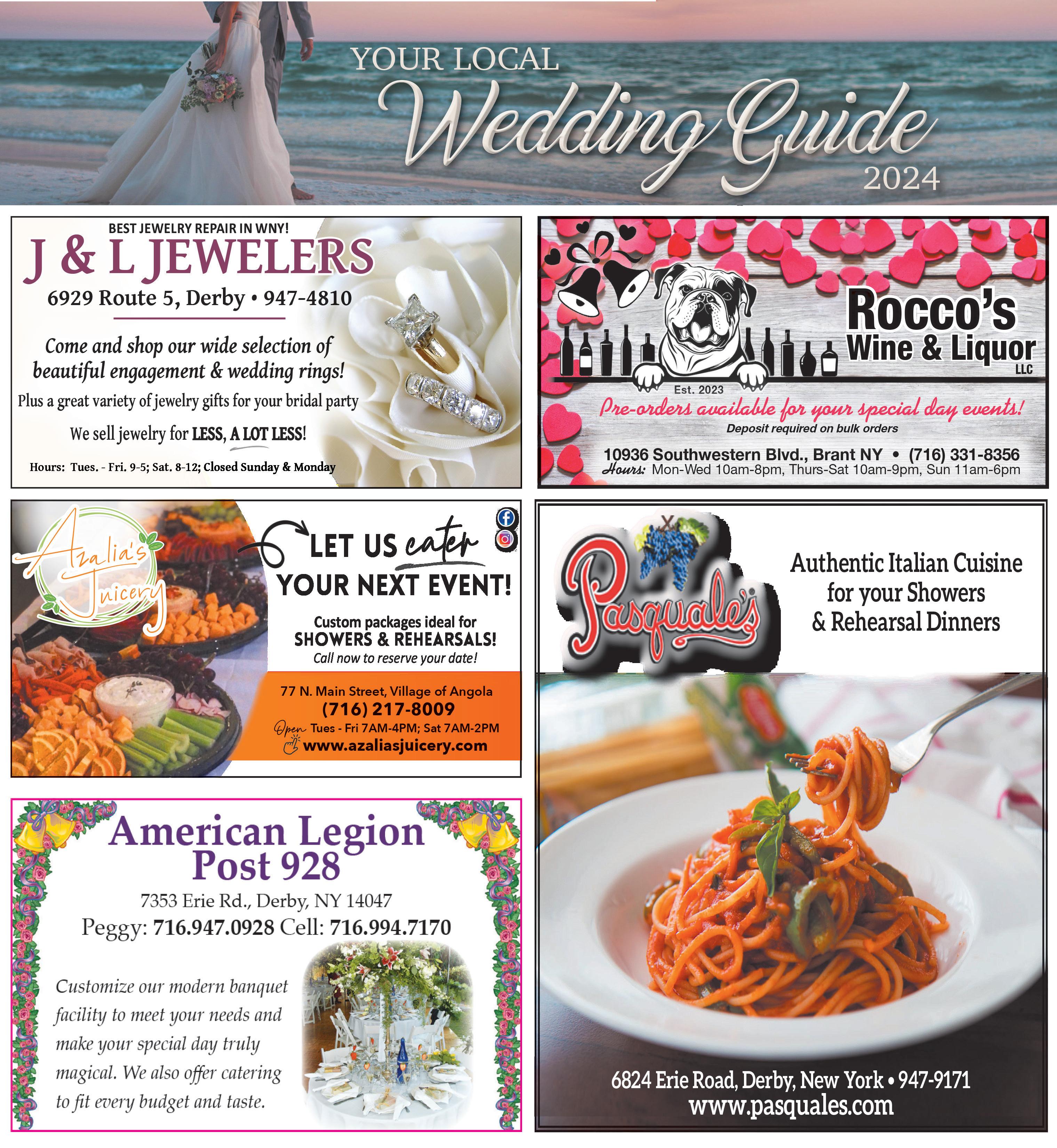 Serving Angola, Derby, Brant, Farnham, Irving and Lake View 19 Center Street, Angola | Phone: (716) 549-1164 | E-mail: info@angolapennysaver.com ANGOLA PENNYSAVER LOCALLY OWNED AND OPERATED SINCE 1930 March 3, 2024 Edition | 94th Year | 9th Week o 77 Your body is worthy of good care! 77 N. Main Street, Village of Angola | (716) 217-8009 | www.azaliasjuicery.com ... juice up! • Cleanse your body from unwanted toxins • Eliminate uncomfortable bloating and gas • Reduce cravings and unhealthy habits • Lose stubborn water and weight retention • Increase energy and eliminate fatigue • Feel rested and sleep better • Balance hormones and sugar levels • Temper migraines and food sensitivities • Eliminate skin conditions like eczema & psoriasis