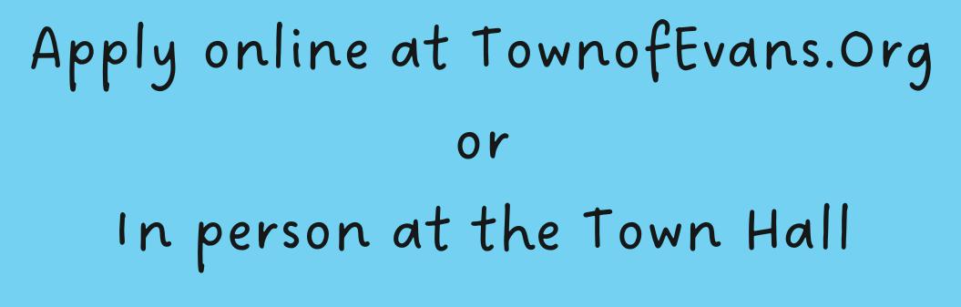 Apply online at townofevansny.gov or In person at the Town Hall Parks Dept.