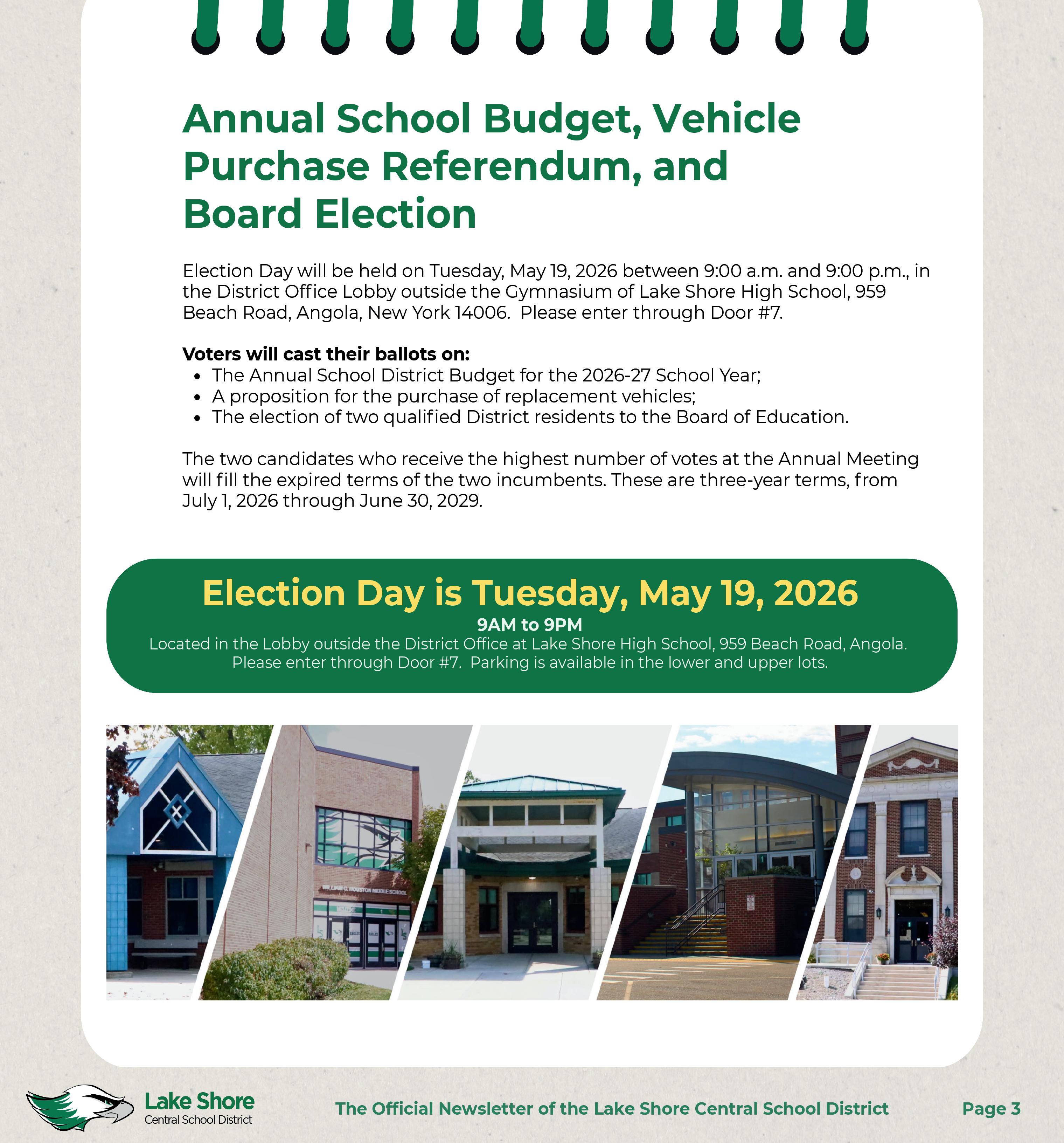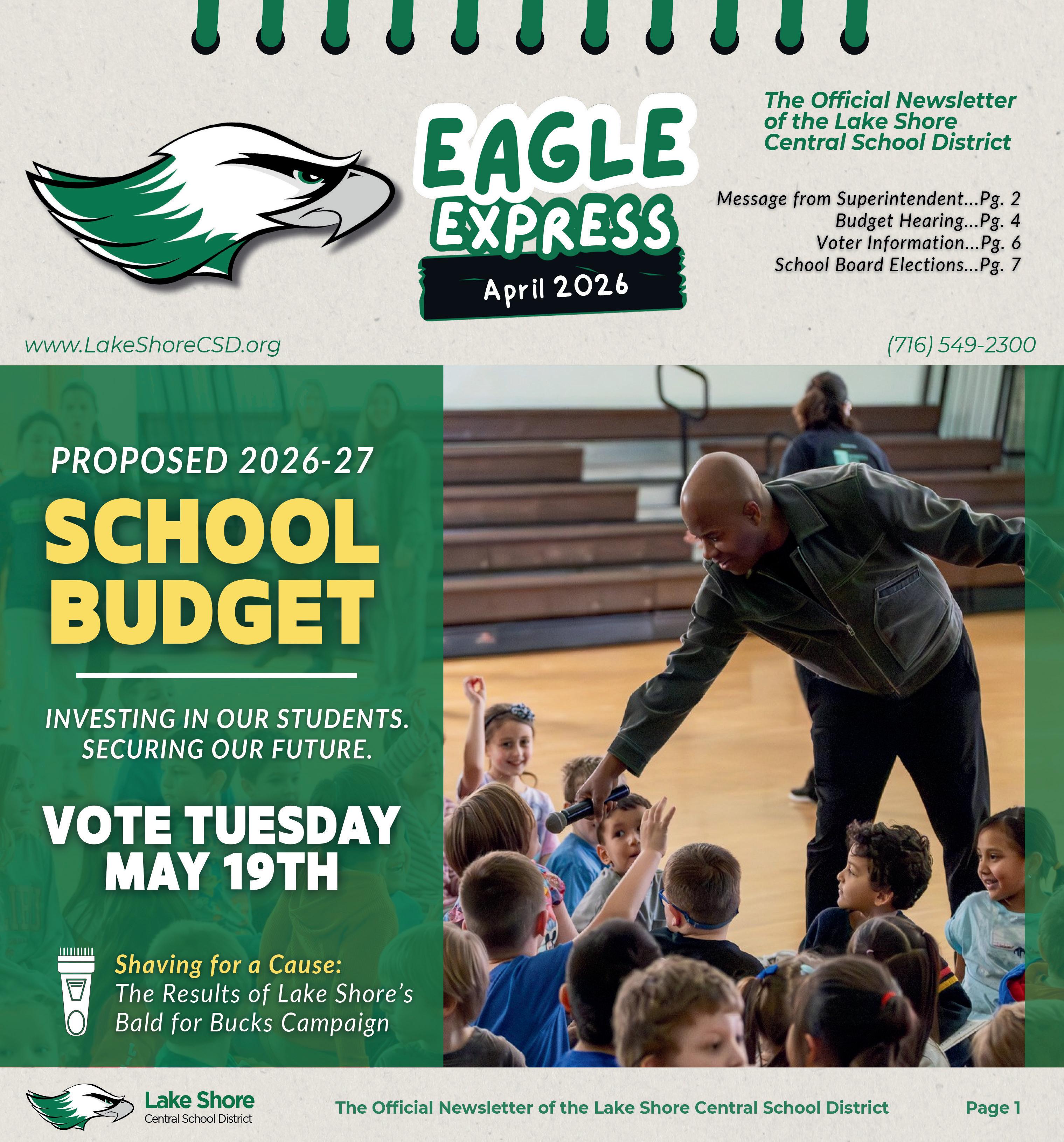 The Annual School Budget Meeting will also be held on Tuesday, May 5, 2026 at approximately 7 p.m., following the Meet the Candidates Program in the High School Media Center. The District encourages District Voters to attend both events so they can be well informed when voting on Tuesday, May 19, 2026.