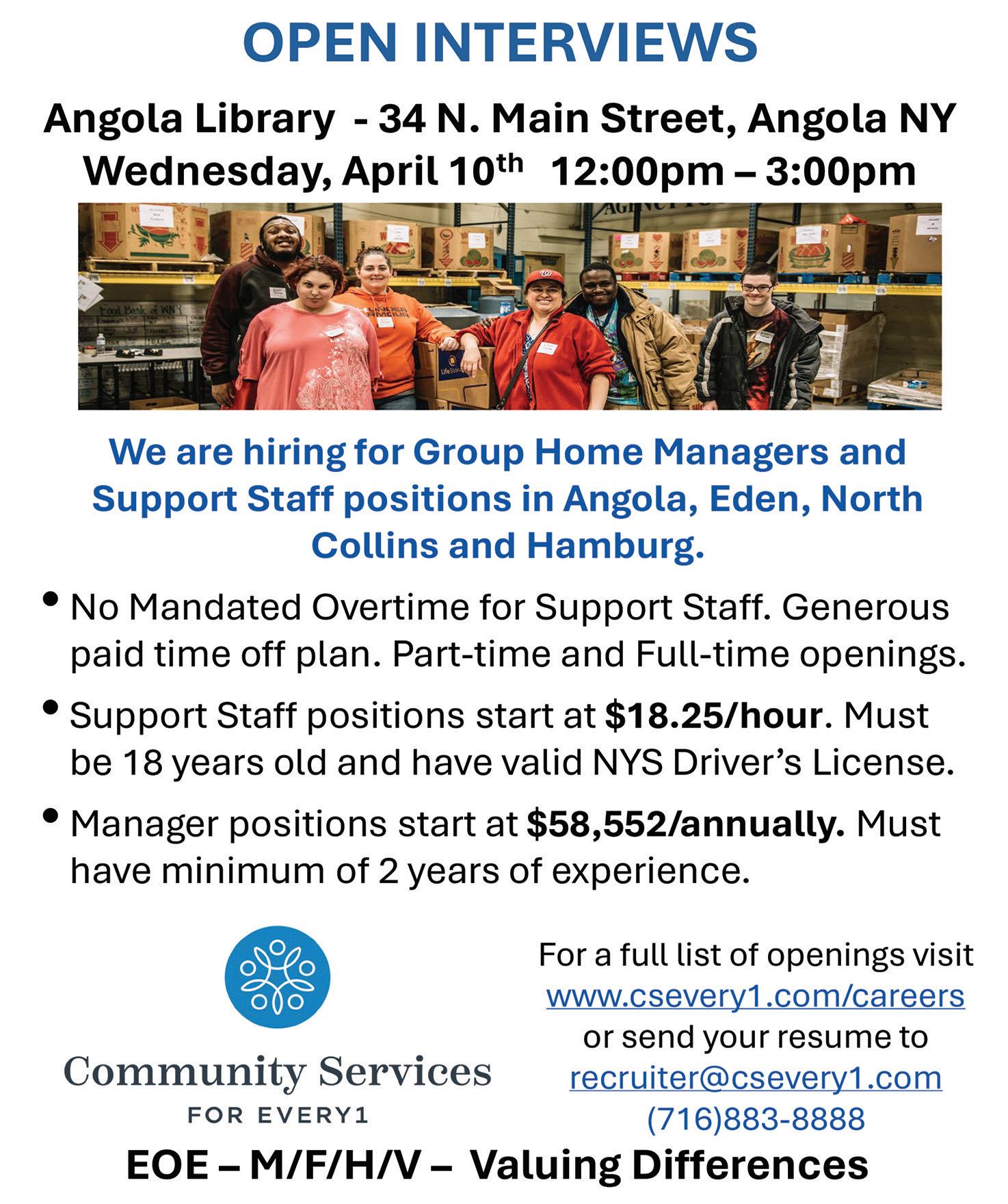 11 Maple Street, Angola, New York 14006 (716) 549-0810, Ext. 33 • (716) 549-6581 Fax