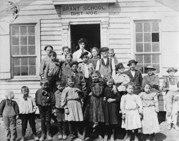 Appearing in this photo of 1912 are (L to R) Back Row: Ella Falk, Hattie Smith, Miss Bessie Bowen, Teacher; Ella Sager, and Edna Juhl. Second Row: Carl Safier, Walter Borngraber, Louis Winters, Charles Juhl. Third Row: Alfred Borngraber, Ivan Hammond, Harry Nordblum and Nick Pero. Front Row: John Juhl, Carl Kuhlman, Fred Sager, Willie Kuhlman, Mabel Sager, Geneva Sager, Emma Juhl, Margaret Pero (Carriere) and Jessie Pero (Minor). Contributed by the Brant-Farnham Historical Society