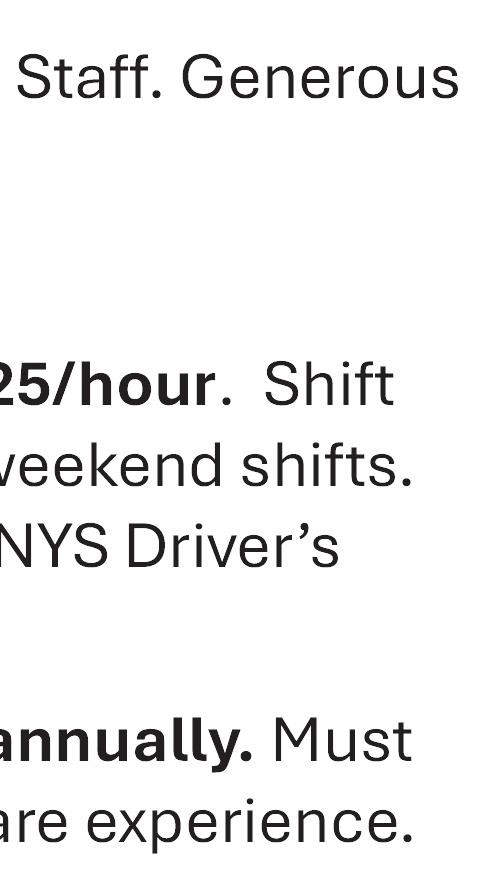 Starts: Monday, July 1, 2024 | Ends: Friday, August 9, 2024 NO RECREATION ON THURSDAY, JULY 4th Time: 9:00am - 3:00pm REGISTRATION BEGINS JUNE 3, 2024 NO BUS: RESIDENT: NON-RESIDENT: 1 CHILD 2 CHILDREN 3 CHILDREN 4 or MORE CHILDREN $115 $195 $260 $275 $235 $465 $605 $660 Registration forms available online at Brantny.com under Parks & Recreation Dept. Please return completed registration forms and required fees to Brant Town Hall, Supervisor’s DeCarlo’s office. Children must be 6 years of age or going into 1st Grade. Current child’s immunization record must be turned in with registration, no exceptions. IN PERSON: Monday - Friday from 10am-4pm EMAIL: sec.supervisor@brantny.com MAIL: P.O. Box 254 Brant, NY 14027 Please call 549-0301 x3 with any questions WITH BUS: RESIDENT: NON-RESIDENT: 1 CHILD 2 CHILDREN 3 CHILDREN 4 or MORE CHILDREN $175 $315 $440 $515 $300 $595 $810 $945 • small digs • driveways • garages • sidewalks • material moving/spreading • daily rentals • etc. MINI BOBCAT WORK Call or text (716)864-1412 Schoolhouse #8 History Center & Museum 2101 School St., North Collins, NY 14111 (next to the Library) Questions or to schedule tours (716) 337-3341 Reopening for 2024 Season Open 1-4pm on Sundays (June 9th - September) Come visit our display of artifacts from one room schools of the 1800’s UPCOMING: Yard Sale @ Library Pavilion Sunday, June 9th 10am-3pm TOURS GIVEN Sunday, June 23rd Kids’ Day With