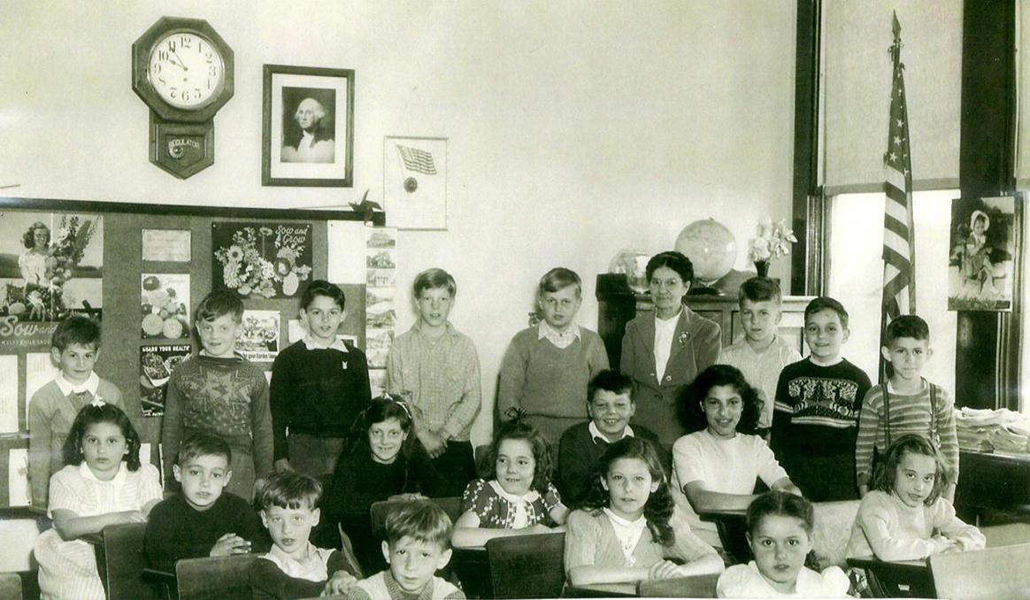 Back row standing (left to right): Harold Hauser, Anthony Renaldo, Vito DeCarlo, Neil Bowman, Donald Janik, Eva Leiker (teacher), Paul Bowman, Joseph Renaldo, and Edward Ring Left most row of seated (front to back): Eugene Ring, Daniel DeCarlo, Paul Renaldo and Rosalie Conti