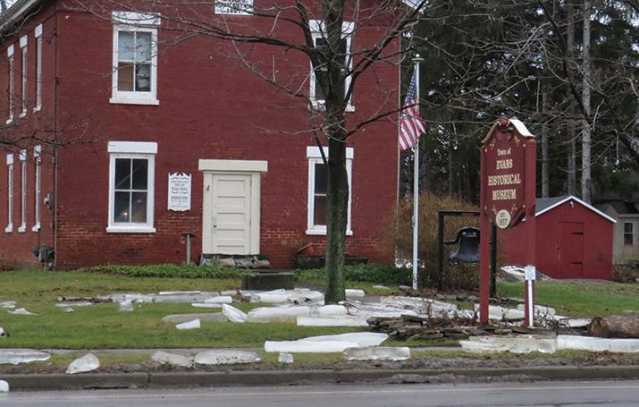 On Thursday January 11, 2018 there was an ice jam on Big Sister Creek. This caused flooding of Route 5 back to the Bennett Road Intersection. The flood water and the ice blocks it carried went as far as Catalano Motors. Route 5 was closed from Sturgeon Point Road to Beach Road. No damage to the Historical building or contents. Fortunately, the water did not get high enough to enter the building.