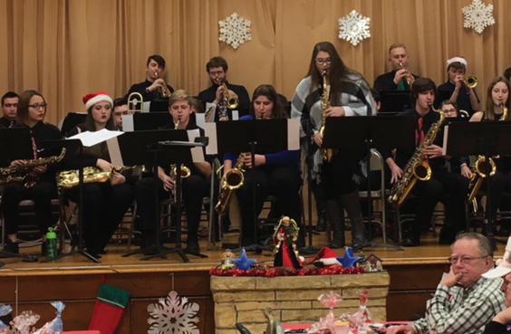 Christmas Holiday Party held at the Senior Center was over the top eventful with entertainment from the Lakeshore High School Jazz Band and Hollie Daze Clown performance. The Evans senior center was packed with over 90 seniors for the Holiday festivities and had the honor of providing lunch for the Students of the High School Jazz Band. Eric Blodgett, conductor of the Lakeshore High School Jazz Band should receive praise for the performance and guidance he provides for these students. They displayed such professionalism and manners as they wowed the audience with their performance, along with the positive interaction that was shown during the luncheon with the seniors. This event was nothing short but great, due to the efforts of the senior staff and the entertainment from Hollie Daze the clown which, had our seniors up and interacting with fun and laughter and holiday enjoyment. This intergenerational event is just one of the many ways that the senior center is providing funding and resources for the continue enjoyment of our ever increasing senior members.