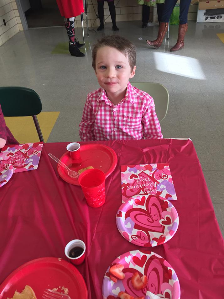 PreK4 students at SS. Peter & Paul School in Hamburg recently celebrated Valentine's Day. Students had a fun party and made heart shaped pancakes. Pictured above is Tyler Campbell enjoying his breakfast.