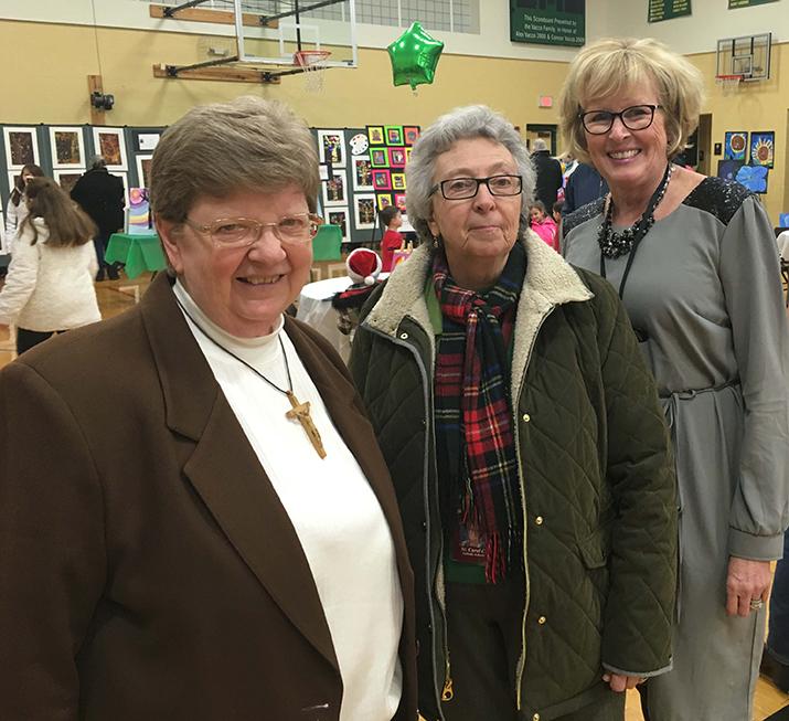 Catholic Schools Week, which takes place at the end of January, is a fun time to celebrate the gift of Catholic education. This year SS. Peter & Paul, a Catholic Community School in Hamburg, hosted their art show during the special week. Families got to tour the gym, which was transformed into a beautiful art gallery. There was also a social in the cafeteria, where students could make their own edible work of art.Pictured from left is SS. Peter & Paul Principal Sr. Marilyn Ann Dudek, Diocese of Buffalo Superintendent of Catholic Schools Sr Carol Cimino and Art Teacher Patti Mehltretter.