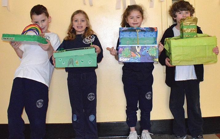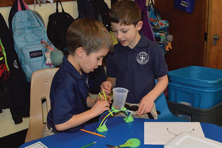 To celebrate St. Patrick’s Day, the students in Mrs. Hill 2nd grade at Southtowns Catholic School built Rainbow Bridges. The students had to work together to create a rainbow bridge that would hold the heaviest pot of gold. They were only allowed to use 8 pipe cleaners and play dough. For the pot of gold, they used pennies and a cup. The winning group’s rainbow held 60 pennies. Pictured: Ethan Rupp & Justin Fera with their winning Rainbow.