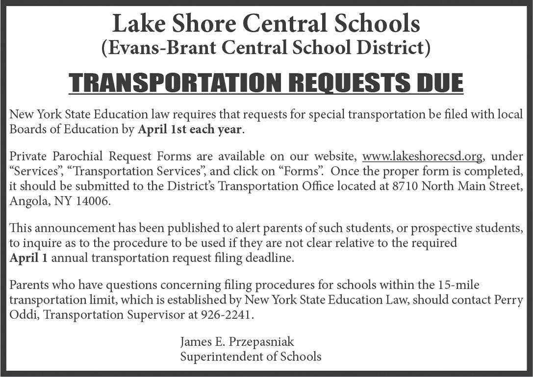 Questions may be directed to the Transportation Department, 716-337-0166 ext. 2200.