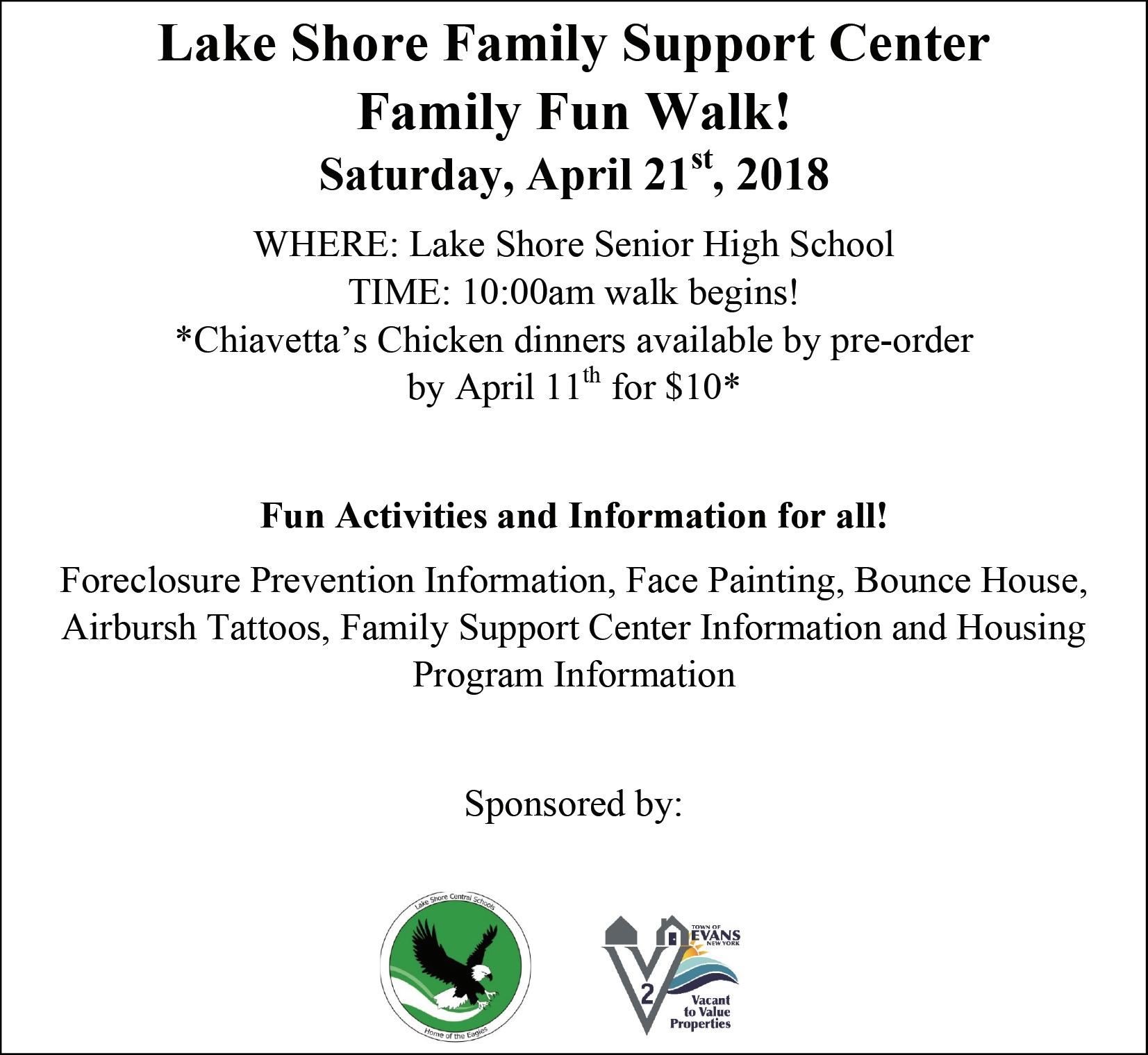 Lake Shore Family Support Center Family Fun Walk! Saturday, April 21st, 2018