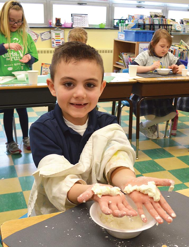 Pictured: Cole Herc with his Oobleck. Contributed by Southtowns Catholic School