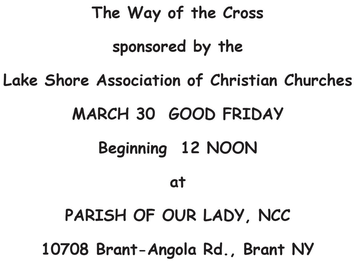 Good Friday, March 30 @ 12 Noon: The Way of the Cross – an Inter- faith celebration of the Passion and Death of the Lord