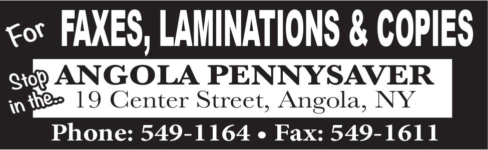 Angola, Derby, Brant, Farnham, Irving and Lakeview 19 Center St., Angola, N.Y. 14006 Phone: 549-1164 Fax: 549-1611 E-mail:info@angolapennysaver.com