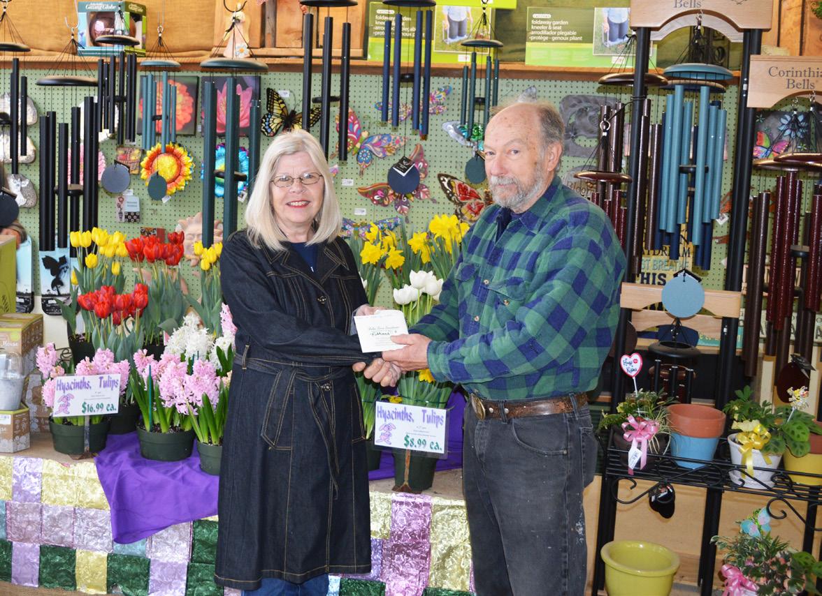 The winning entry, among many who participated , was drawn this past week in our annual Golden Egg contest. The winner was Kathy Mancuso of Derby, NY. Kathy correctly identified the one-of-a-kind Golden Egg, among other colored eggs that appeared randomly in ads throughout our April 9th, 2017 edition. The Golden Egg appeared in the ad for Bella Terra Greenhouse. Pictured is Kathy, along with Caryl Youngers( owner of Bella Terra Greenhouse). Caryl is shown presenting Kathy with a gift certificate to Bella Terra.
