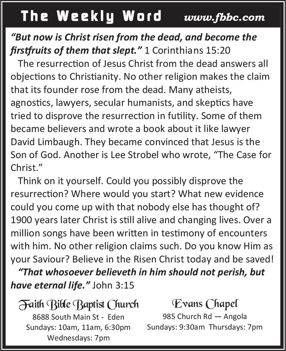 Wanted: The Fields of Eden needs part-time maids for cleaning. Must be available between 11 am and 3 pm. Schedules will be developed to cover all 7 days. Tag teams would be an ideal situation if you have a partner that is interested too. Please call 716 575-4411 and leave a message for Robin.