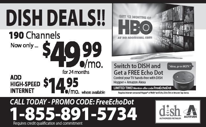 DISH TV. 190 channels. $49.99/mo. for 24 mos. Ask About Exclusive Dish Features like Sling® and the Hopper®. PLUS HighSpeed Internet, $14.95/mo. (Availability and Restrictions apply.) TV for Less, Not Less TV! 1-855-891-5734