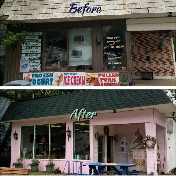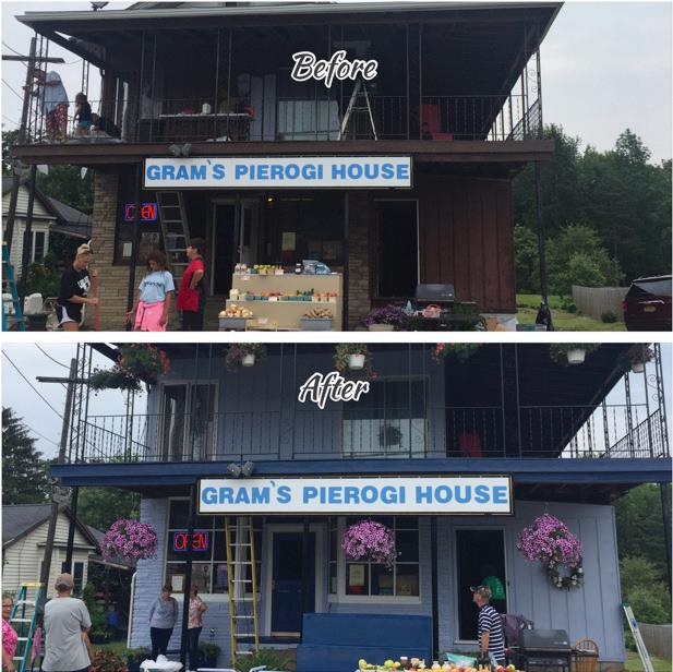 On July 22, 2017 the Village of Angola hosted a one day, community service effort to “beautify” nine buildings in it’s business district. Approximately 108 members from our community and beyond volunteered their time to paint facades, paint tables and chairs, shingle an overhang, clean inside and outside of buildings, plant flowers, pull weeds, mow lawns, sweep sidewalks, trim shrubs, wash windows, put up shutters, flower boxes and signage, play music, feed volunteers, and add white lights to our tree lined Main Street in the Village of Angola. The idea was started by two friends who regularly took walks that led them through Main Street. They went door to door to recruit workers and also took up collections from residents and area businesses to help pay for the supplies to help their neighbors in the business district “beautify” their buildings. Our major donors were Gernatt Asphalt Products, Goya Foods, and Dr. Mark Damerau. New Era Cap, Shultz & Co Hardware and Appliances, Ace Hardware, Chiavetta’s Greenhouse. Home Depot, Tim Clark, Evans Garden Club, Addison’s Funeral Home, Connors Hotdog Stand, Lake Shore Hardware, Sam’s Lumber, Tops Angola location Basil’s Service Center, the Angola Pennysaver Inc., and local residents were also instrumental in helping the funding of this project.