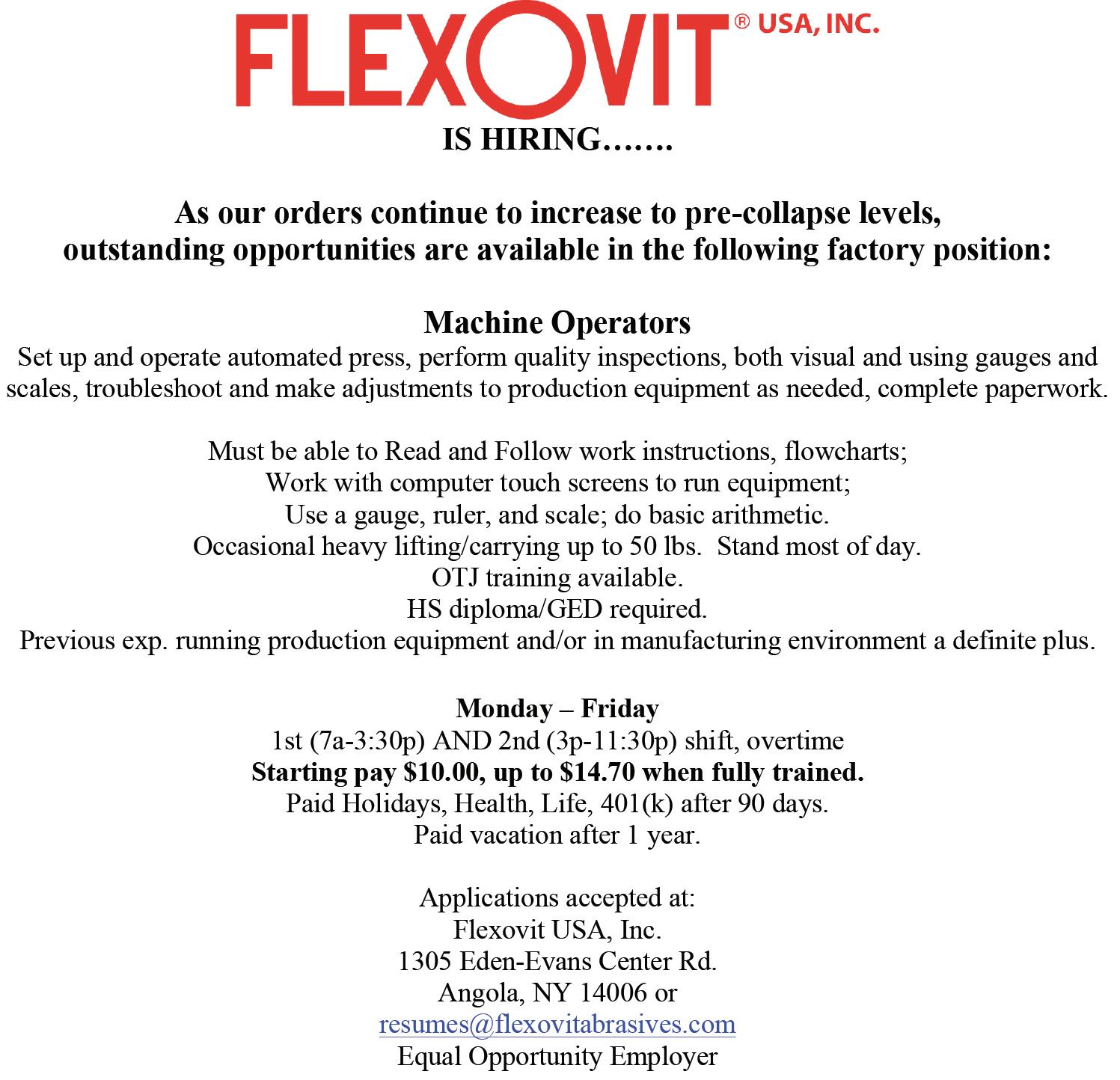 Our growing company is looking to fill the following positions at our Gowanda location: Production Line Operator Environmental Lab Associate Process Engineer • Skilled Machinist