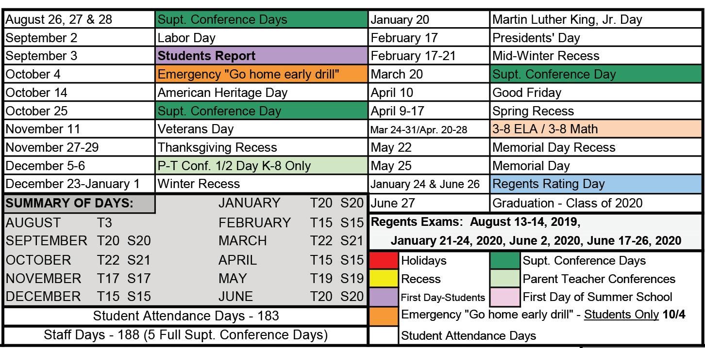 2019-2020 Lake Shore Central Schools - Instructional Calendar