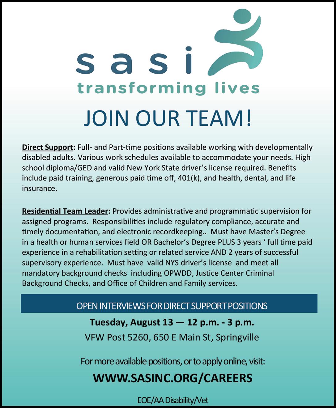 is a local builder of quality portable buildings and we are looking for full time/ part time seasonal sale persons to work at our display lots. The season is April to Thanksgiving. If you have a great personality and enjoy sales, please call Caleb at 585-735-2003.