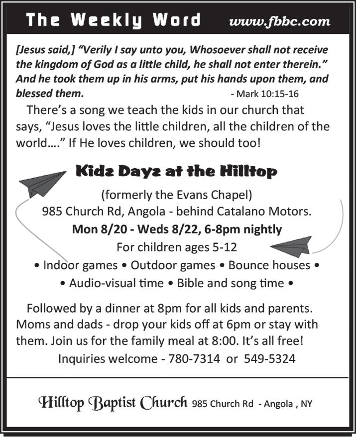 19 Center Street, Angola, New York 14006 PHONE: (716) 549-1164 • FAX: (716) 549-1611 ww w.angolapennysaver.com